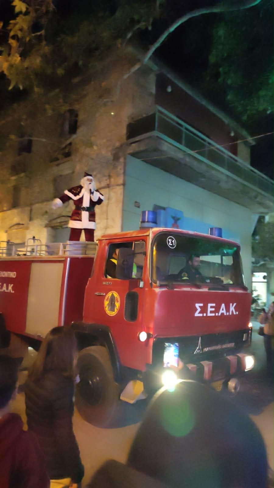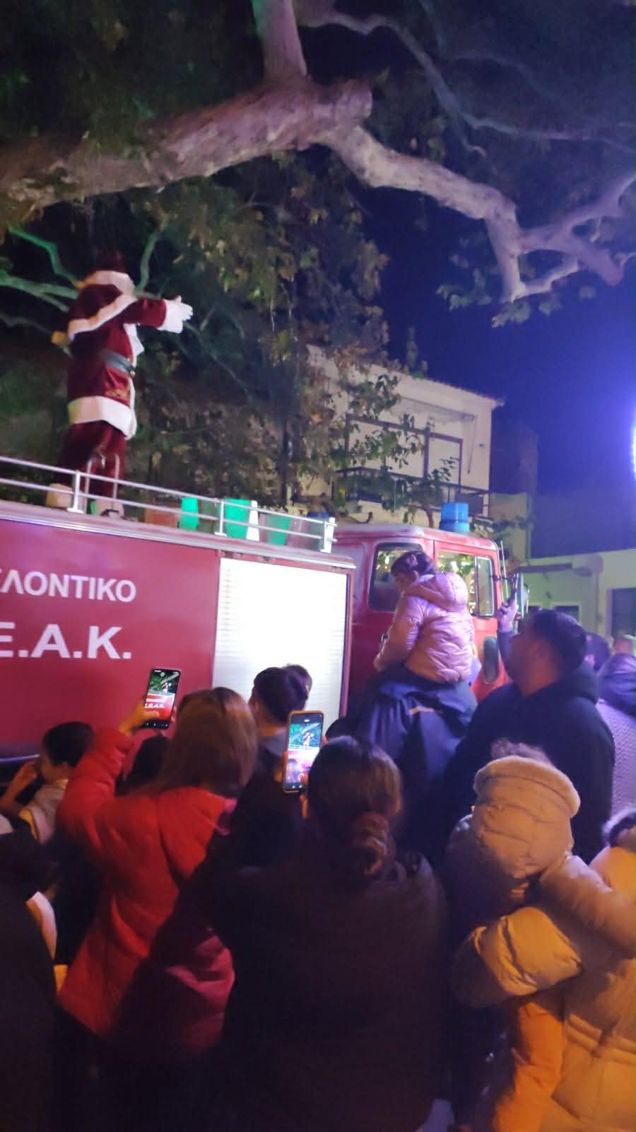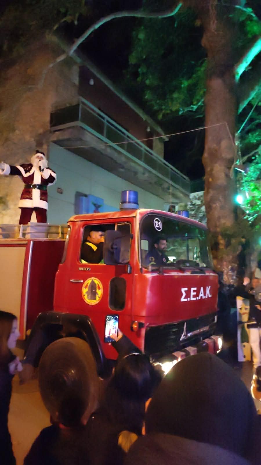 Με Πυροσβεστικό όχημα έφτασε ο Αγιος Βασίλης στα Πολιτικά Ευβοίας (pics&vid)