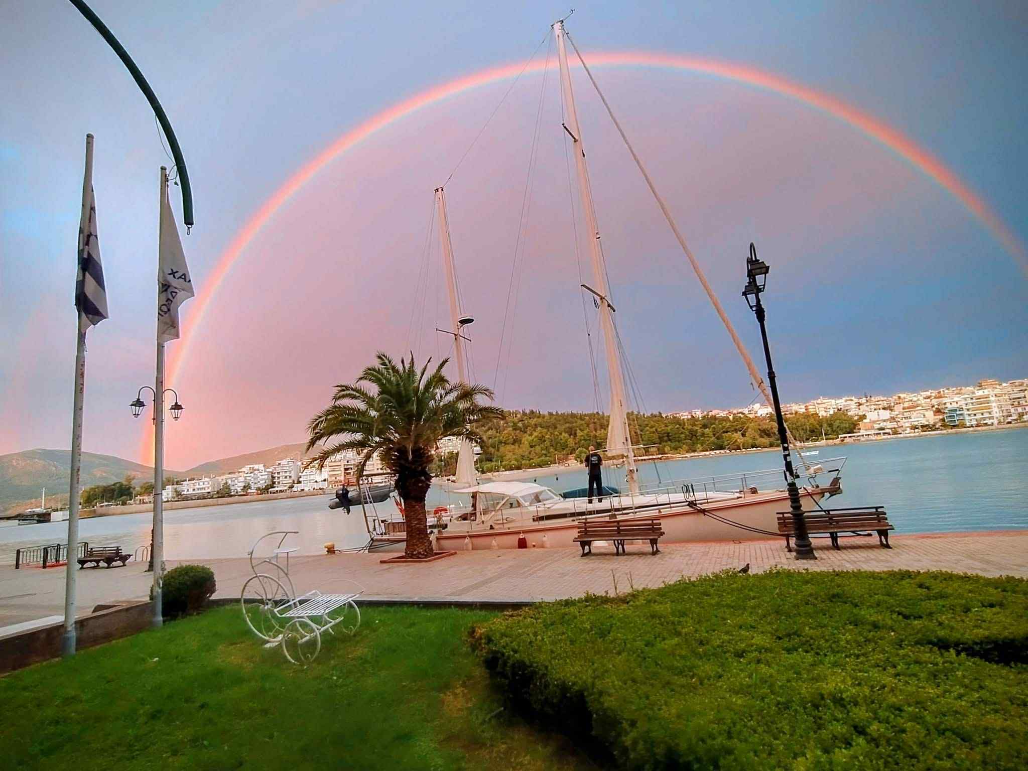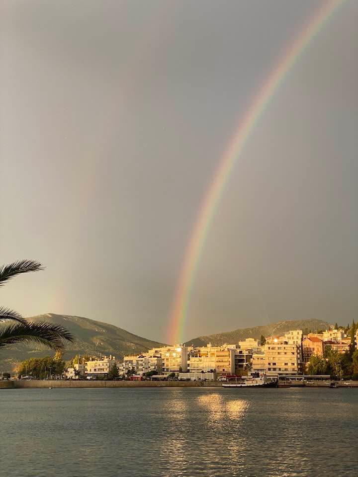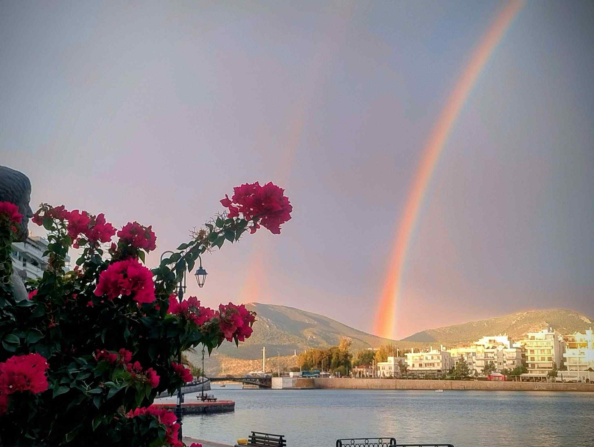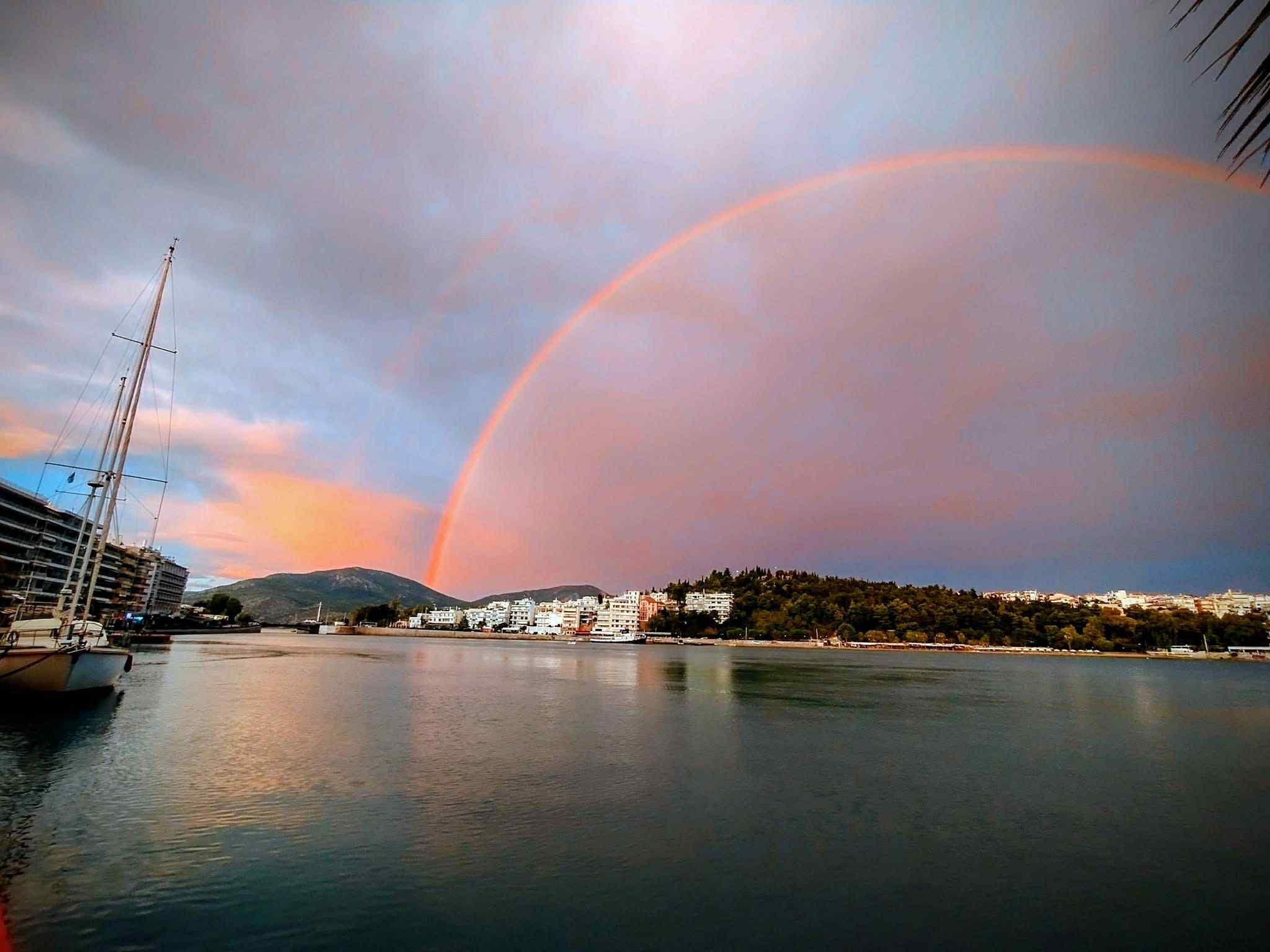 Μαγευτικό ουράνιο τόξο πάνω από τη Χαλκίδα – Εντυπωσιακές εικόνες από τα ξημερώματα