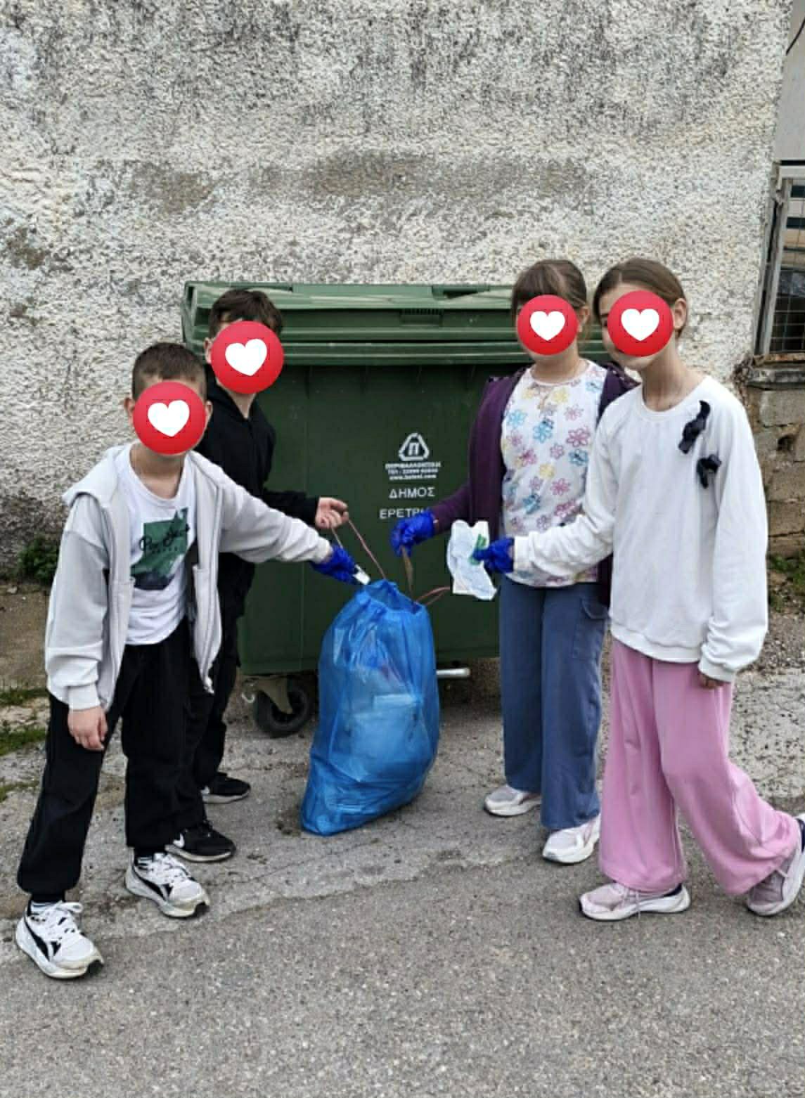 Οι μικροί μαθητές έστειλαν το μήνυμα ότι η προστασία του περιβάλλοντος αποτελεί συλλογική υπόθεση και απαιτεί τη συμμετοχή όλων, για έναν καθαρότερο Δήμο Ερέτριας.