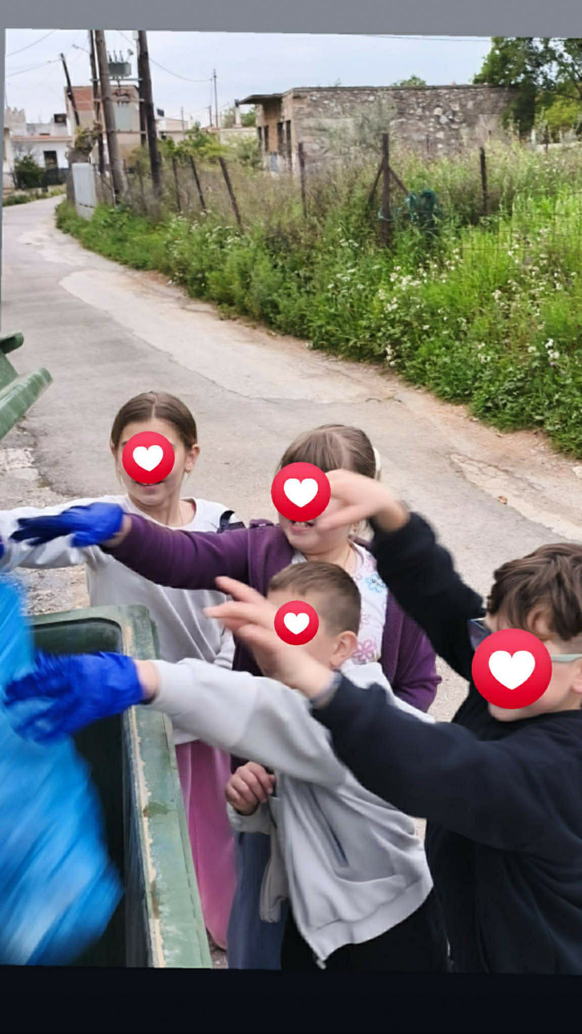 Εκτός σχολικού ωραρίου, οι μαθητές φόρεσαν γάντια και συμμετείχαν ενεργά στον καθαρισμό γειτονιών του χωριού, συμβάλλοντας ουσιαστικά στη βελτίωση της εικόνας του οικισμού. Στη συνέχεια, συγκέντρωσαν τα απορρίμματα σε σακούλες, τις οποίες σφράγισαν και τοποθέτησαν στους κάδους απορριμμάτων.