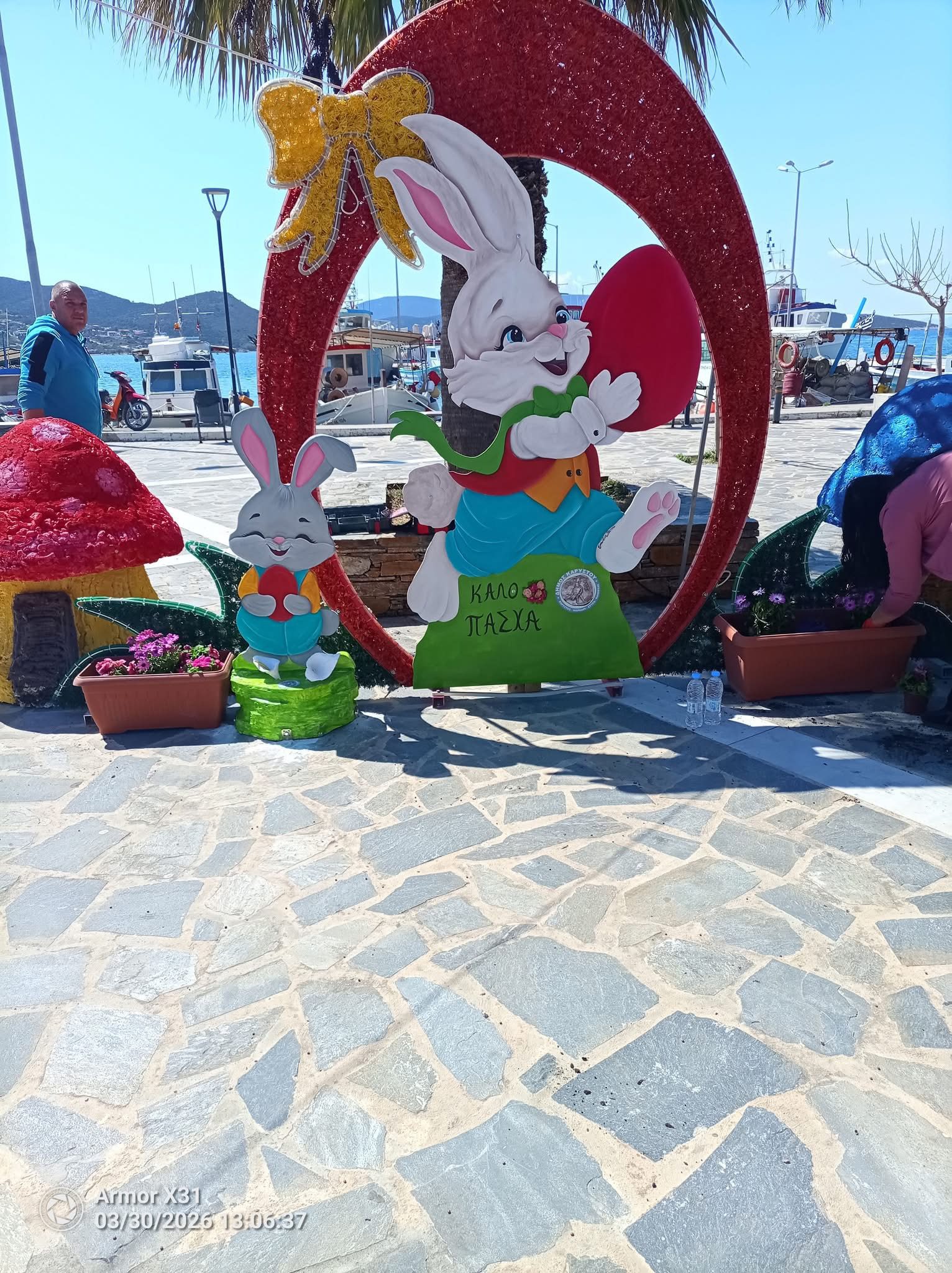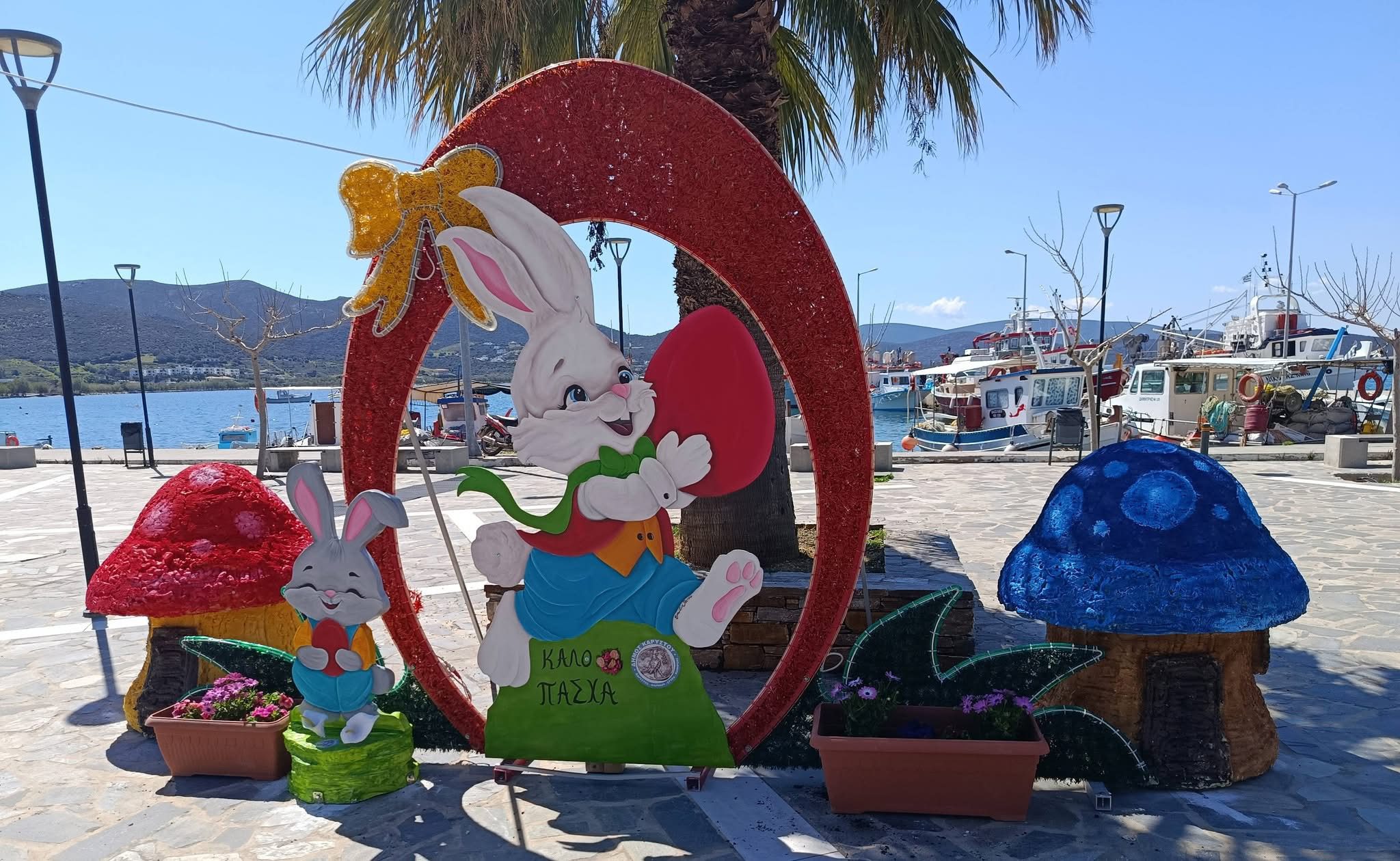Ο Δήμος Καρύστου υποδέχεται το Πάσχα με μια έκρηξη χρωμάτων, φαντασίας και χειροποίητης δημιουργικότητας! Στα Νέα Στύρα, ο φετινός στολισμός μοιάζει σαν ένα παραμυθένιο σκηνικό: παντού κυριαρχούν λαμπερά πασχαλινά αυγά, χαρούμενοι λαγοί που κρύβονται ανάμεσα σε λουλούδια και πεταλούδες που πετούν παιχνιδιάρικα, προσκαλώντας μικρούς και μεγάλους να ζήσουν τη μαγεία των ημερών.
