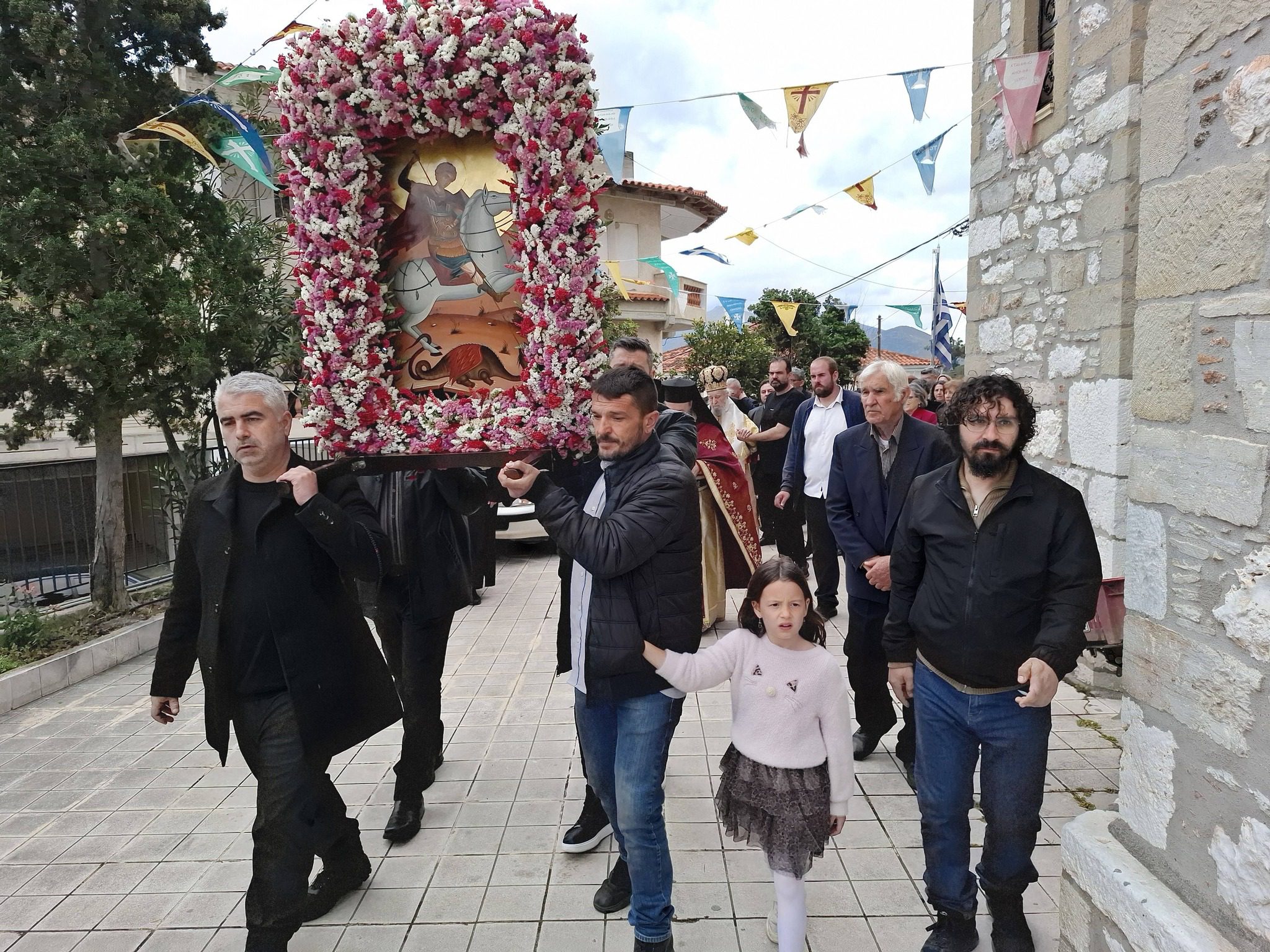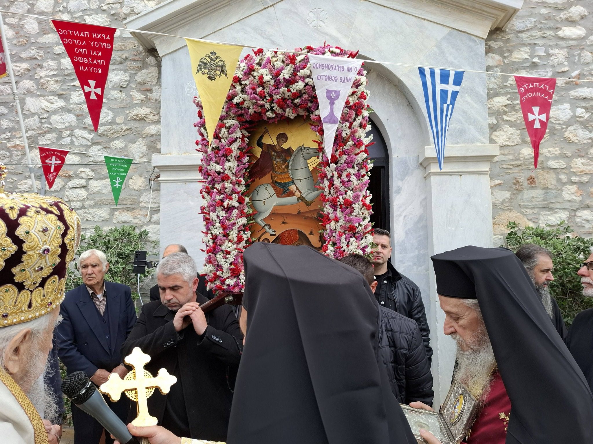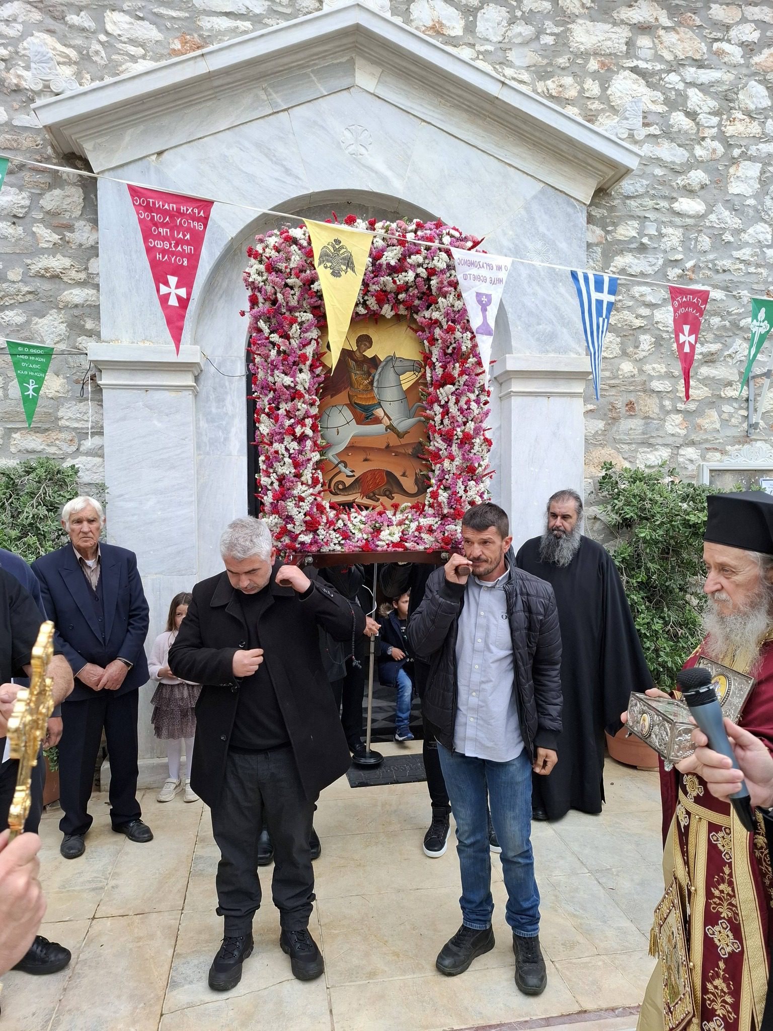 Περιφορά ιστορικής εικόνας του Αγίου Γεώργιου σε εκκλησία της Εύβοιας