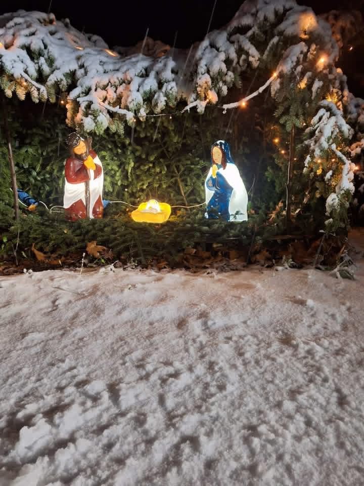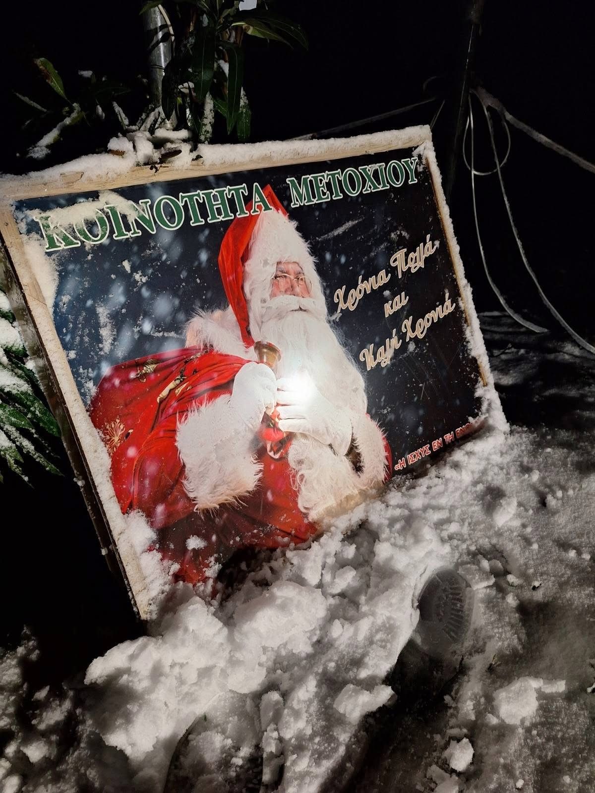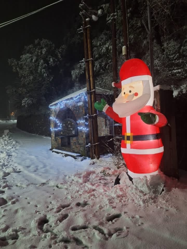 Ιδιαίτερη εντύπωση προκάλεσε η στολισμένη πλατεία του χωριού, όπου η πανέμορφη φάτνη και ο Άγιος Βασίλης, σκεπασμένοι από το χιόνι, έμοιαζαν ακόμα πιο εντυπωσιακοί. Το σκηνικό αυτό έγινε σημείο συνάντησης μικρών και μεγάλων, που δεν έχασαν την ευκαιρία να φωτογραφηθούν και να απολαύσουν τη σπάνια αυτή στιγμή.