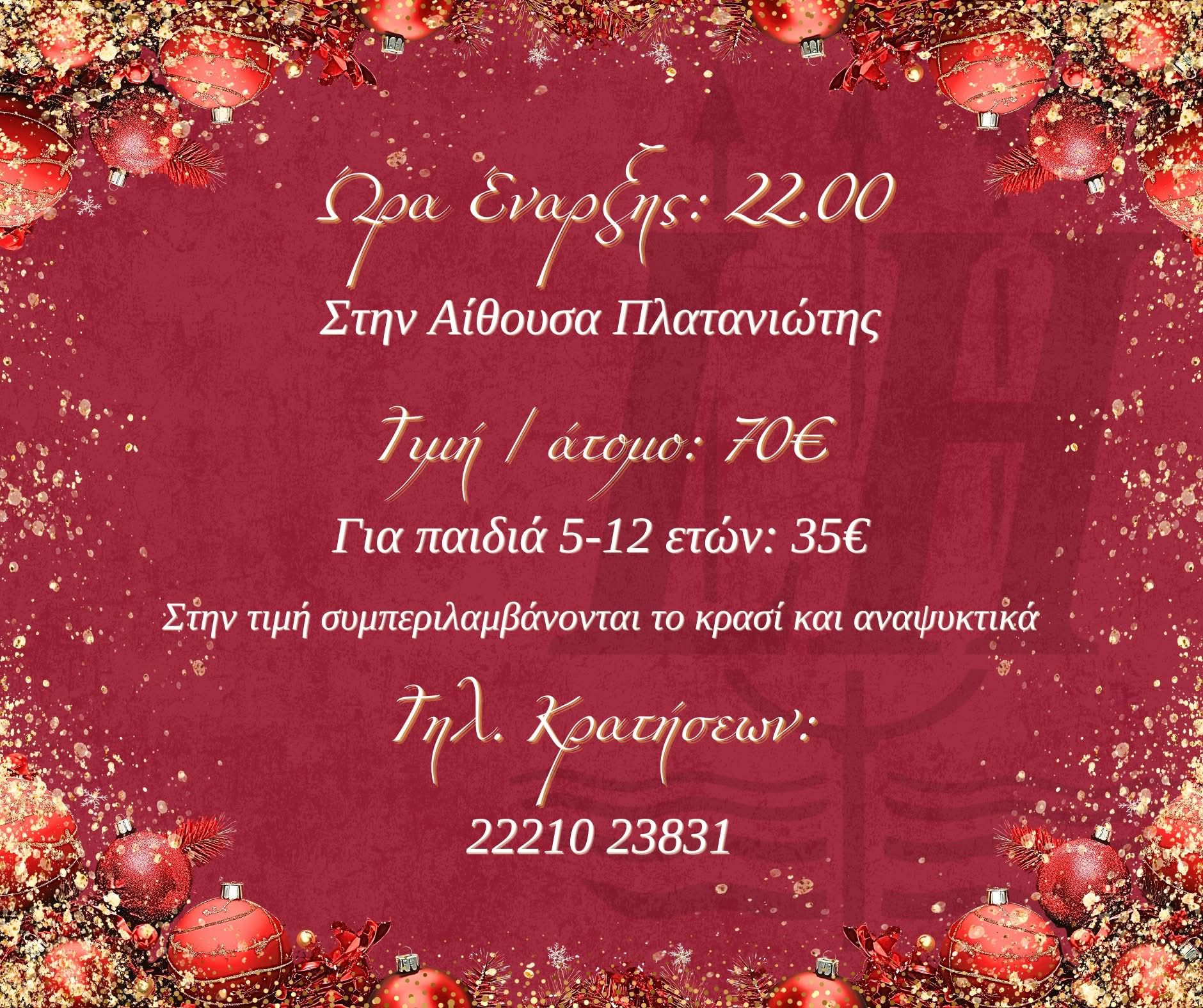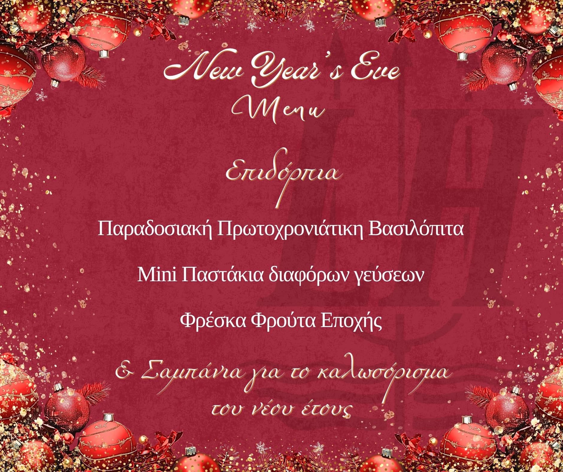 Κλείστε έγκαιρα τη θέση σας και ελάτε να υποδεχτούμε μαζί το Νέο Έτος με χαμόγελα, μουσική και υπέροχες γεύσεις!