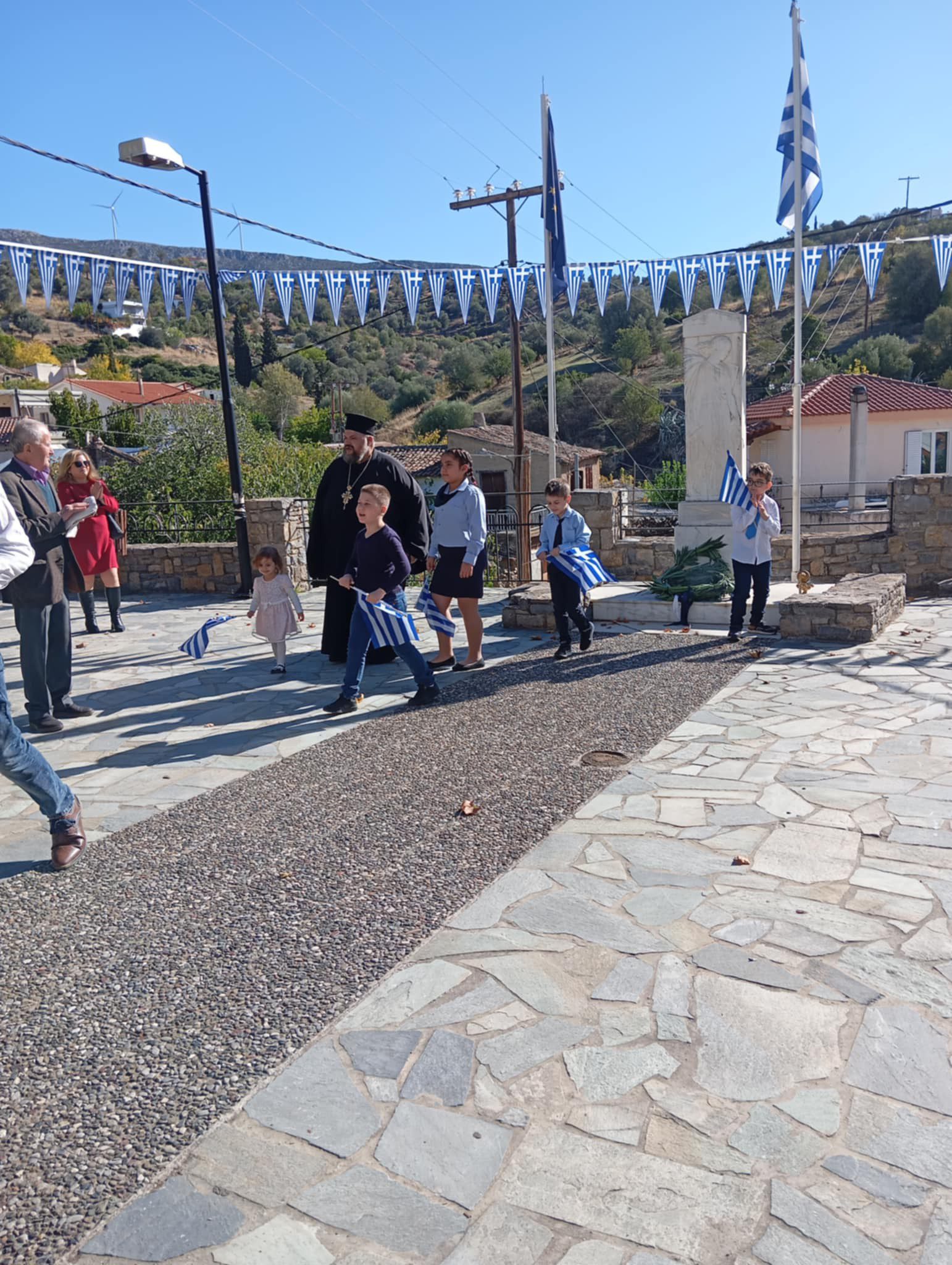 Τη σκυτάλη των τιμών παρέλαβαν τα παιδιά του Κατηχητικού Σχολείου, τα οποία με σεβασμό και συναίσθηση κατέθεσαν στεφάνι στη μνήμη των ηρωικών πεσόντων. Στη συνέχεια, απήγγειλαν πατριωτικά ποιήματα, αποδίδοντας φόρο τιμής στους ήρωες του ’40. Η συγκίνηση κορυφώθηκε με την πραγματοποίηση μικρής παρέλασης από τα παιδιά, που έδειξαν με την παρουσία τους την ευγνωμοσύνη και την αφοσίωση τους στις αξίες της ελευθερίας και της πατρίδας.