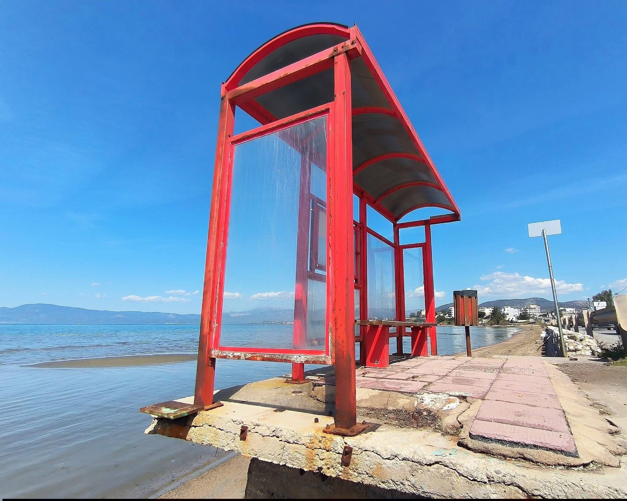 Σε μικρή απόσταση από το σημείο, εντοπίζεται στάση λεωφορείου σε ιδιαίτερα κακή κατάσταση: