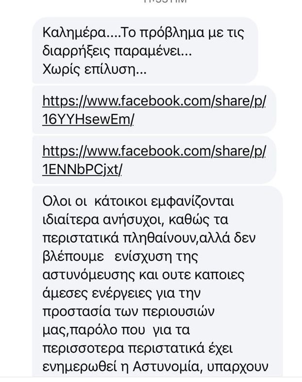 Κάτοικος της περιοχής καταγγέλλει στο evima.gr την αγωνία που επικρατεί κάνοντας λόγο για απουσία αστυνόμευσης και ότι οι περιπολίες πρέπει να αυξηθούν καθώς έχουν ενημερώσει επανελλημένα τις Αρχές.