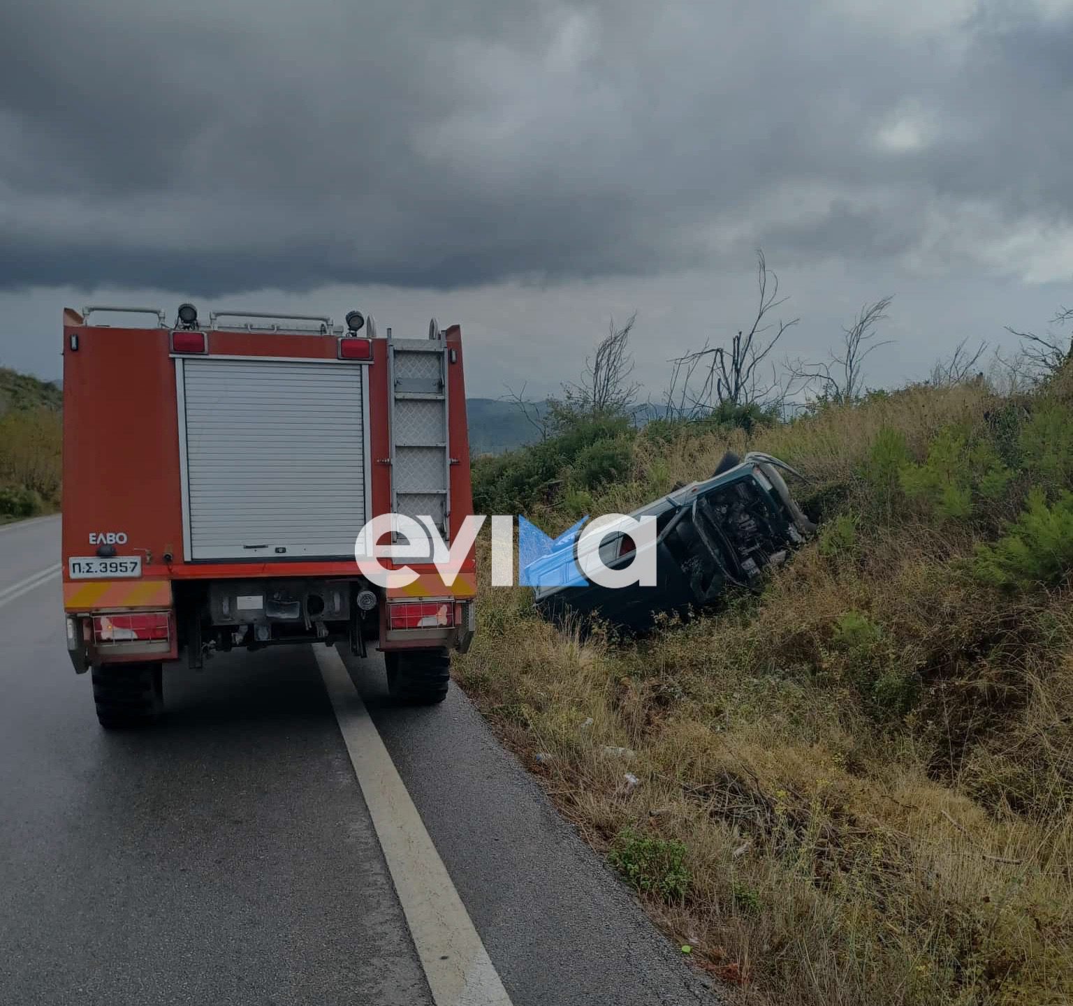 Σοβαρό τροχαίο ατύχημα σημειώθηκε πριν από λίγο στην Εύβοια, όταν τζιπ εξετράπη της πορείας του και ανατράπηκε μέσα σε χωράφια.