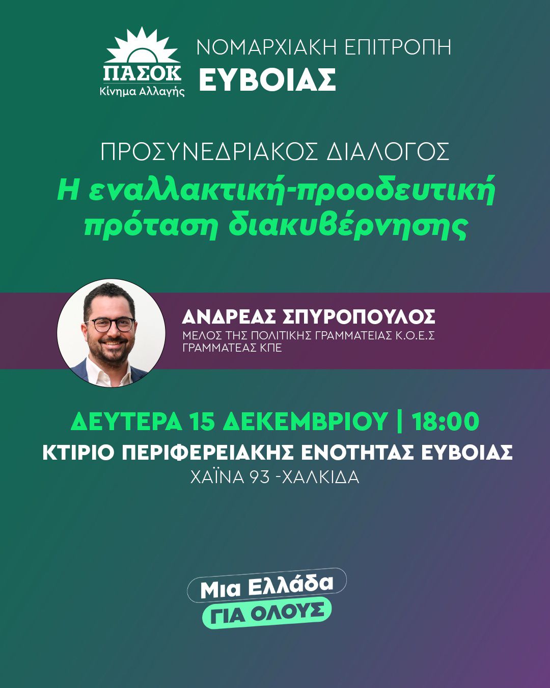 Το ΠΑΣΟΚ Εύβοιας καλεί την κοινωνία της Εύβοιας να συμμετάσχει ενεργά στον προσυνεδριακό διάλογο, συμβάλλοντας με ιδέες και προτάσεις στη συλλογική προσπάθεια για πολιτική αλλαγή.
