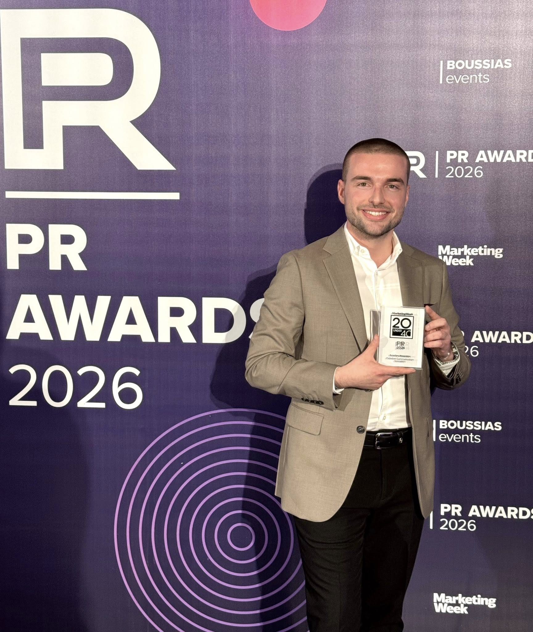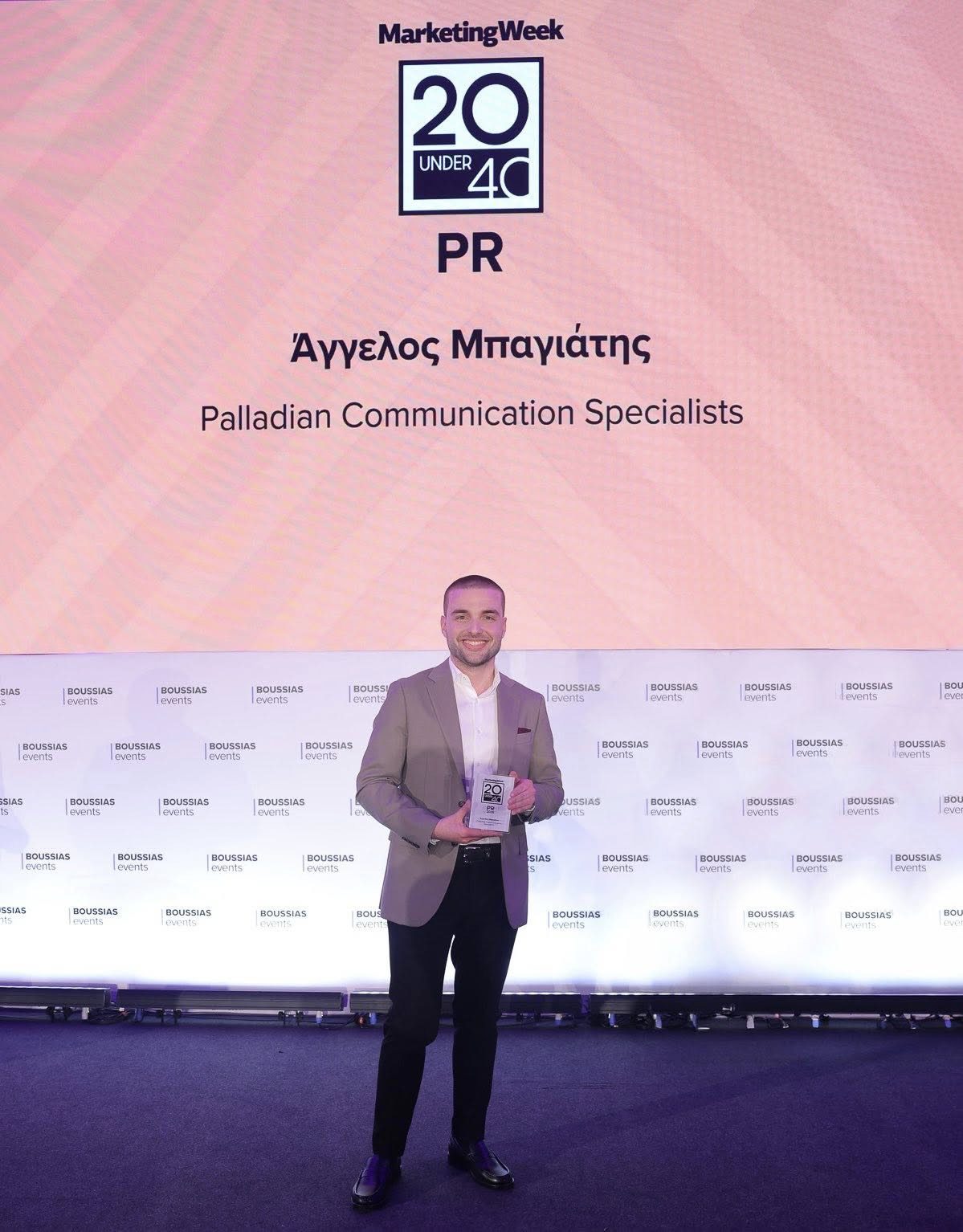 Χθες έλαβε μία τιμητική διάκριση από το περιοδικό MarketingWeek, το οποίο τον συμπεριέλαβε στη λίστα 20 under 40 PR με κορυφαία και επιδραστικά στελέχη της νέας γενιάς.