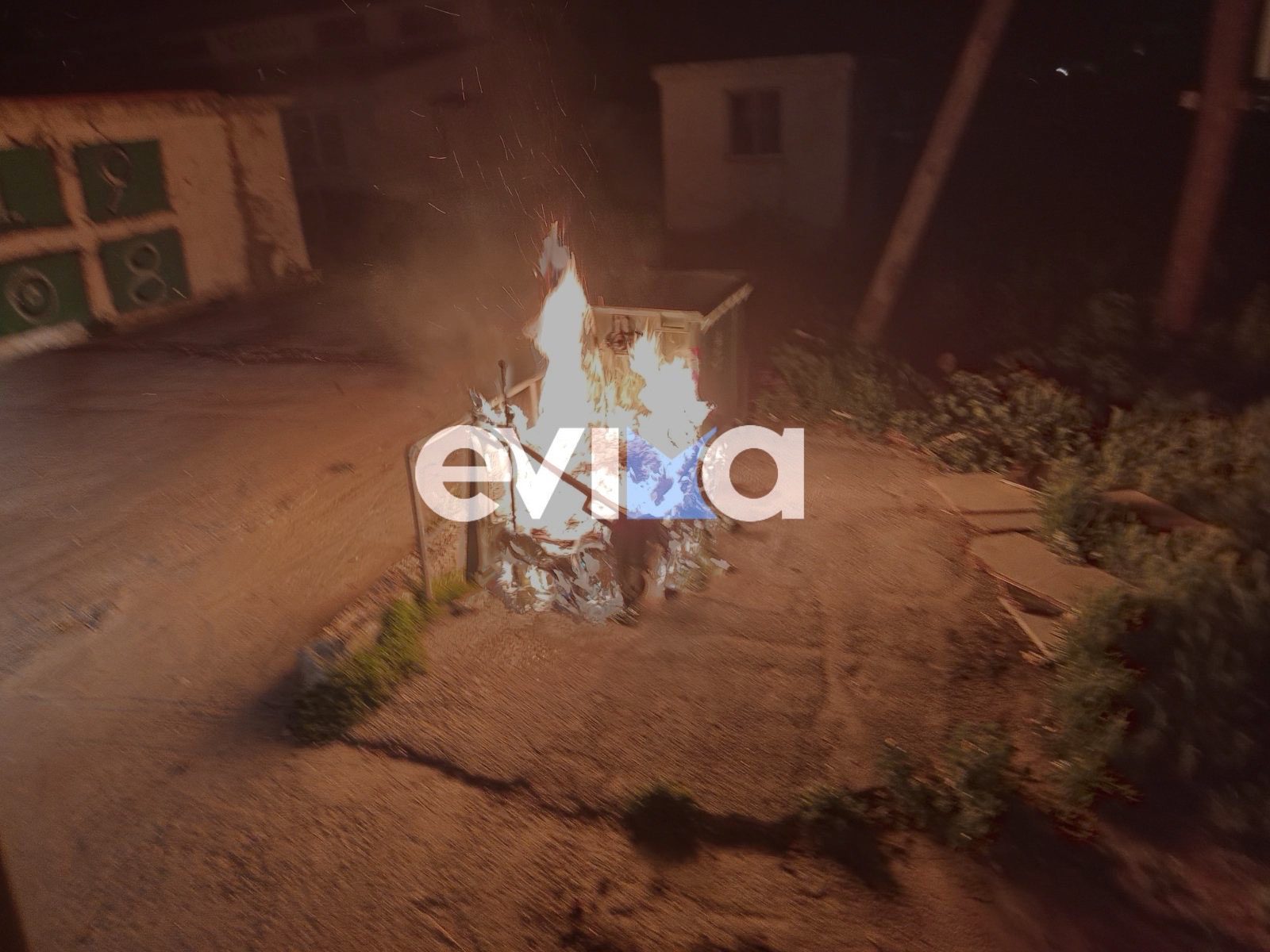 Συναγερμός τη νύχτα στην Κάρυστο: Κάδος τυλίχθηκε στις φλόγες – Εικόνες