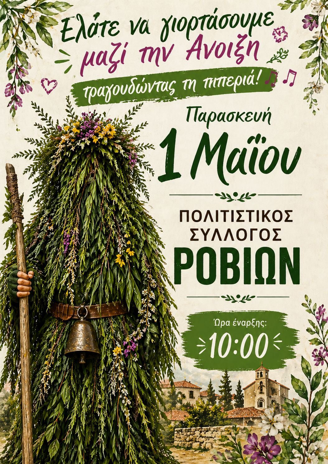 Την αναβίωση του εθίμου διοργάνωσε ο Πολιτιστικός Σύλλογος Ροβιών, με τον «Πιπεριά» να κάνει ξανά την εμφάνισή του στο χωριό, παρουσία κατοίκων και του Αντιδημάρχου κ. Γιώργου Σταμούλου.