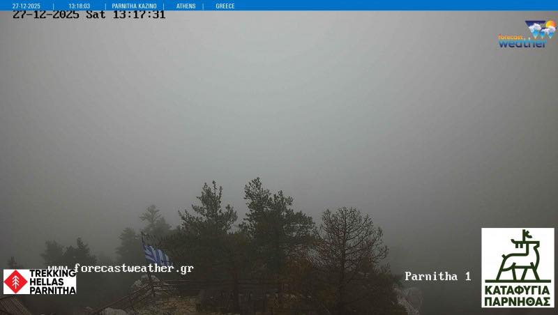 Χιονίζει στην Πάρνηθα δείτε ζωντανή εικόνα από τα καταφύγια της Πάρνηθας