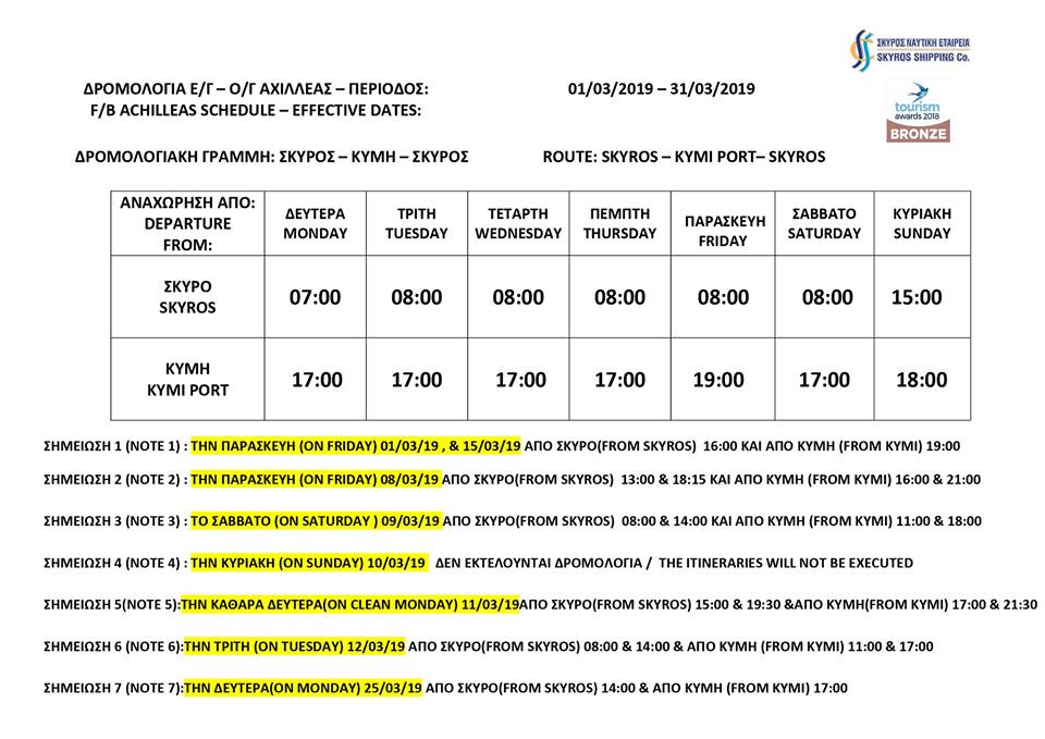 ΝΕΑ ΔΡΟΜΟΛΟΓΙΑ / NEW TIMETABLE 01/03/19 – 31/03/19