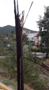 Σφοδρή καταιγίδα έπληξε και την Ιστιαία προκαλώντας σοβαρές ζημίες σε δρόμους αλλά και σε σπίτια. Πιο συγκεκριμένα προκάλεσε πτώσεις δέντρων και όπως θα δείτε στις εικόνες κόπηκαν στα δύο κολώνες τις ΔΕΗ. Οι οδηγοί θα πρέπει να είναι πολύ προσεκτικοί!