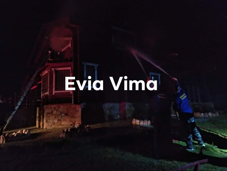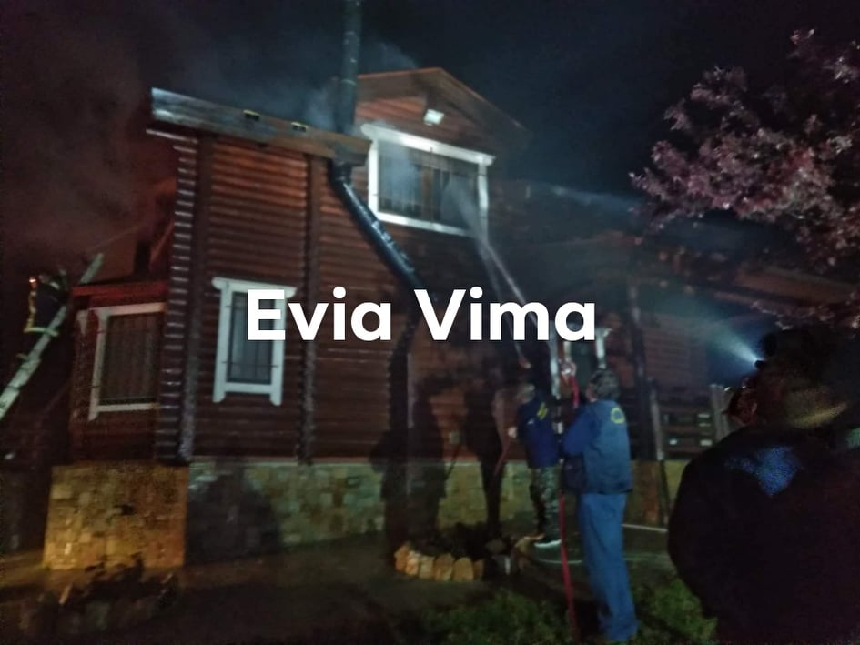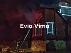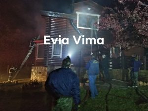 Φωτιά σε ξύλινη κατοικία στα πλακάκια Ερέτριας. Επιχειρούν 5 οχήματα της πυροσβεστικής Χαλκίδας και Αλιβεριου με δέκα άνδρες, και δύο εθελοντικά οχήματα του Fetes club 4×4 με δέκα εθελοντές.