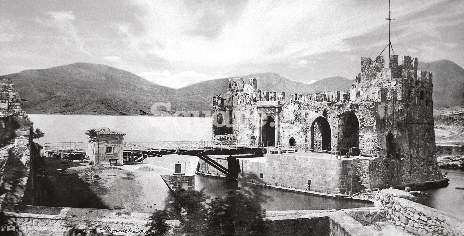 Στην εικόνα  απεικονίζεται η «Οθωνική» γέφυρα του Ευρίπου και το κάστρο στη μέση του πορθμού. Αριστερά, ξεχωρίζει το μικρό τετράγωνο οίκημα όπου κατοικούσε ο φύλακας της γέφυρας, όπως μας ενημερώνει στο χειρόγραφό του ο Γ. Φιλάρετος. Φωτογραφία Ναυάρχου Μένσελ, τραβηγμένη από τις επάλξεις των τειχών που βρίσκονταν δίπλα στο σπίτι του, στις 18-5-1870. Φωτογραφίες-square.gr