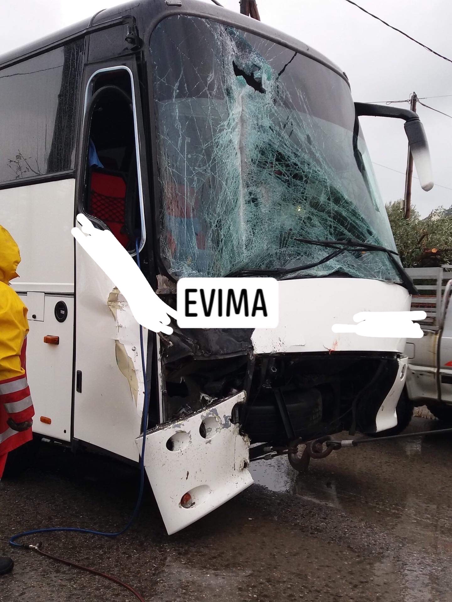 Όπως θα δείτε στις εικόνες σμπαράλια έγινε το τουριστικό λεωφορείο που προσέκρουσε στο πίσω μέρος του απορριμματοφόρου και σκότωσε ακαριαία τον υπάλληλο.