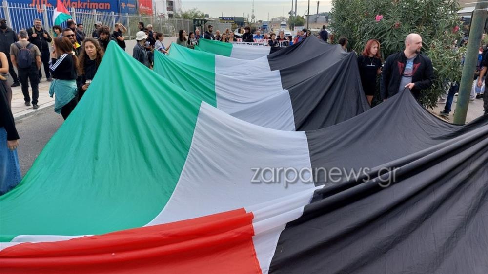 Διαδηλωτές κρατούν πανό με συνθήματα, όπως «ανεπιθύμητοι οι ισραηλινοί στρατιώτες» και «καμία γωνιά του κόσμου δεν είναι ελεύθερη χωρίς ελεύθερη Παλαιστίνη».Κατέφτασε νωρίς το πρωί στο λιμάνι της Σούδας το ισραηλινό κρουαζιερόπλοιο Crown Iris εν μέσω αντιδράσεων τοπικών συλλόγων και συλλογικοτήτων.
