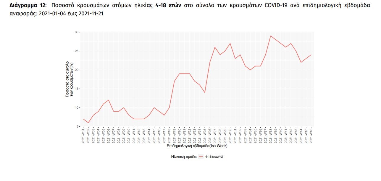 Ο αριθμός αυτός αντιστοιχεί στο 24% των συνολικών κρουσμάτων, αυξημένος κατά 4,4% συγκριτικά με την προηγούμενη εβδομάδα.