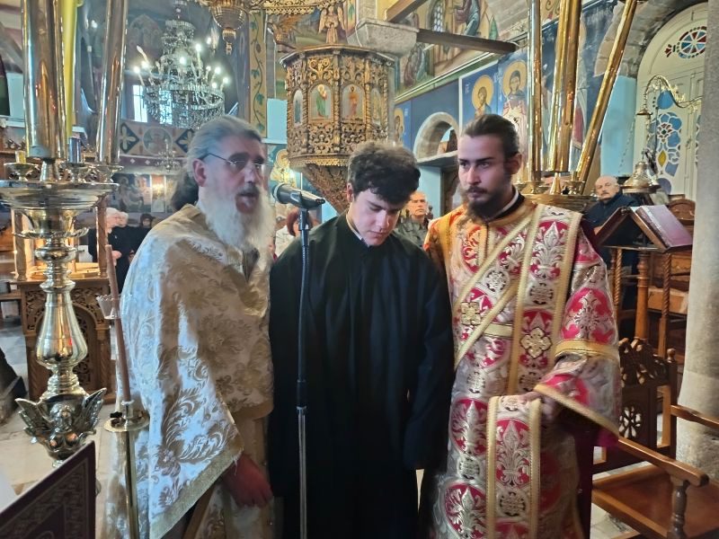 Νέος Αναγνώστης χειροθετήθηκε ο μαθητής της Α’ Λυκείου Ιωάννης Πριονιστής, ο οποίος εξ απαλών ονύχων έχει κάνει τα πρώτα του βήματα στη ζωή της Ενορίας, πλησίον του ιερέως π. Χρήστου Λιθαδιώτη, αναλαμβάνοντας και το ιδιαίτερο αυτό λειτούργημα στο αναλόγιο.