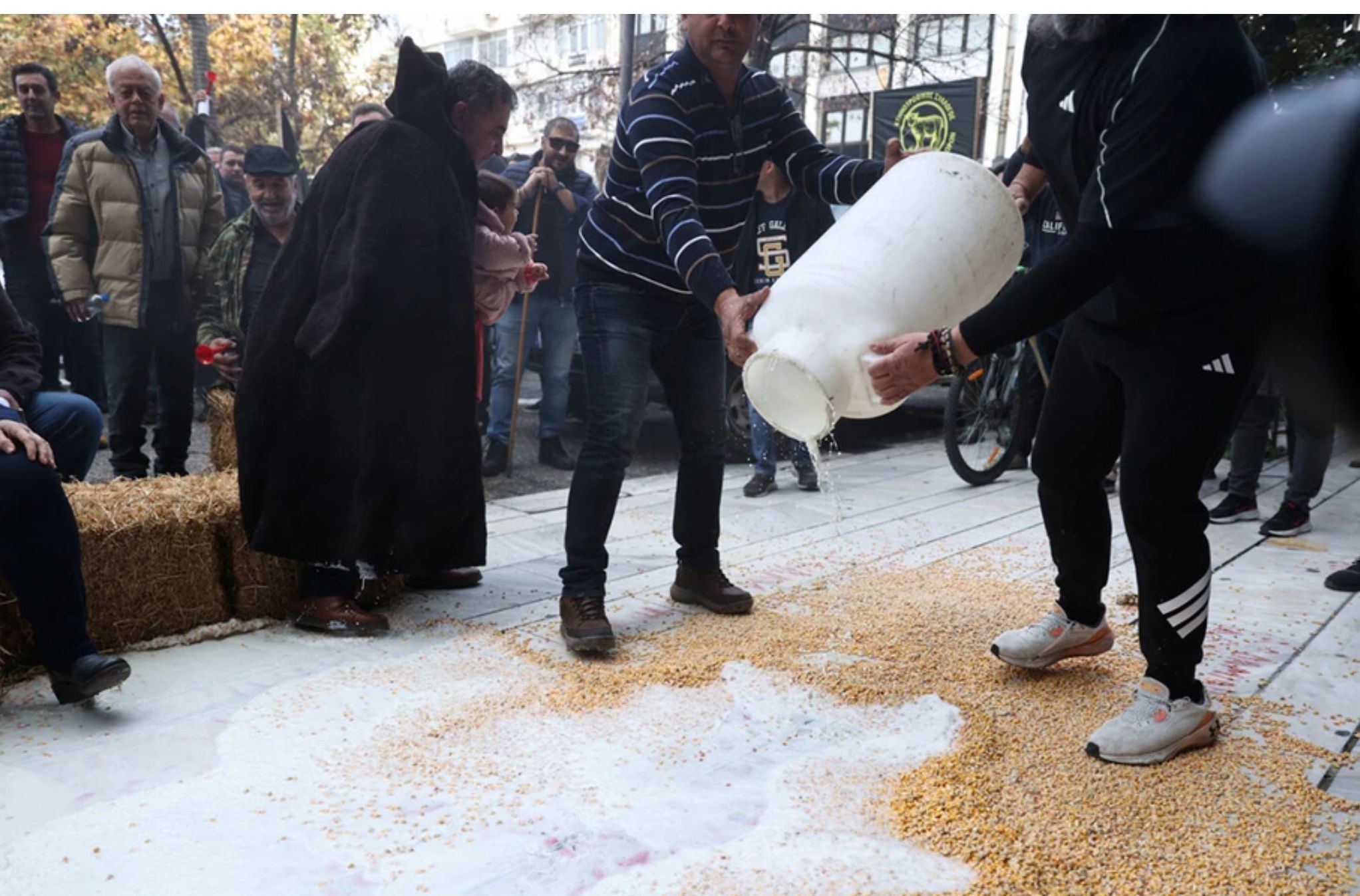 Οργισμένοι κτηνοτρόφοι έχυσαν γάλα και ζωοτροφές μπροστά από το Δικαστικό Μέγαρο Λάρισας