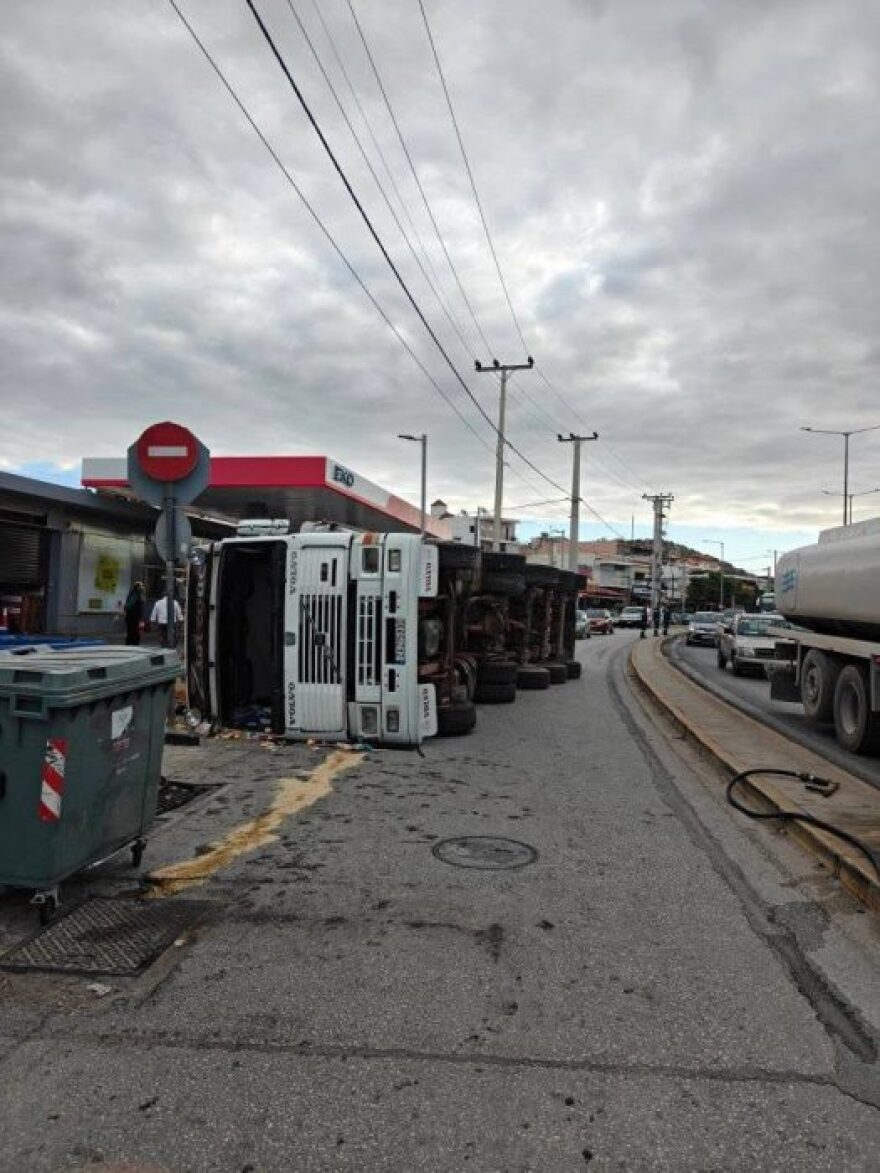 Σοβαρό τροχαίο στη Βάρη: Νταλίκα με σακιά ανετράπη σε λεωφόρο