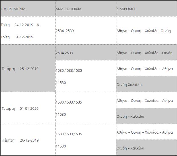 Ειδικότερα στο Τμήμα ΑΘΗΝΩΝ – ΟΙΝΟΗΣ – ΧΑΛΚΙΔΑΣ – ΑΘΗΝΩΝ, ισχύει: