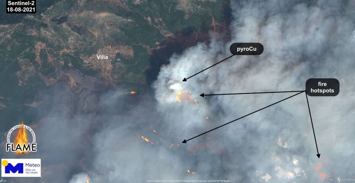 «Ακραία συμπεριφορά πυρός εμφάνισε την Τετάρτη 18 Αυγούστου 2021 η δασική πυρκαγιά που εκδηλώθηκε τη Δευτέρα 16 Αυγούστου 2021 στην περιοχή των Βιλίων, στη δυτική Αττική.