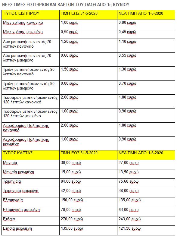 Έως και 9 ευρώ χαμηλότερες τιμές σε ΜΜΜ, ΚΤΕΛ και Ταξί  [Πίνακες]
