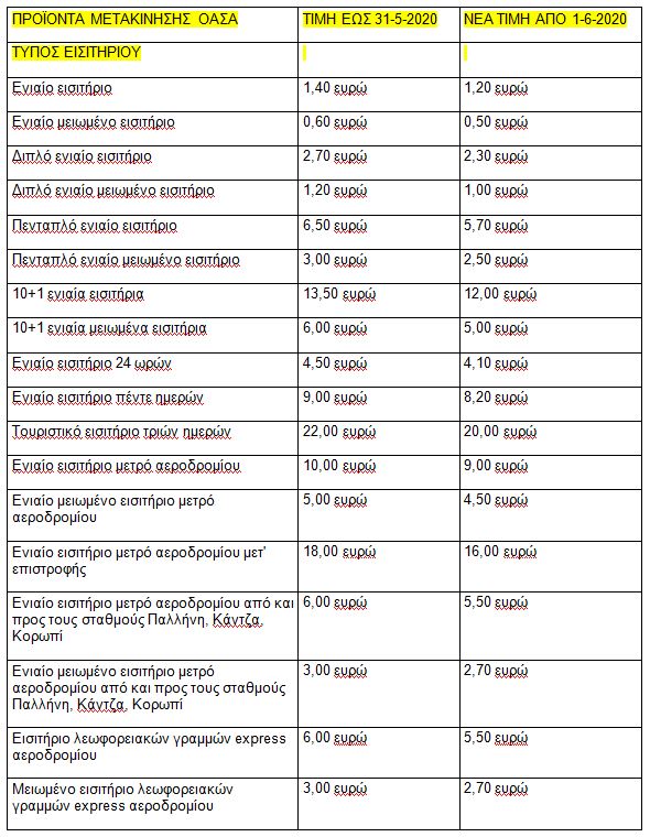 Στα δε Μέσα Μαζικής Μεταφοράς το μεμονωμένο εισιτήριο του ΟΑΣΑ κοστίζει 1,20 ευρώ και το μεμονωμένο εισιτήριο του ΟΑΣΘ 0,90 ευρώ. Ακόμη μεγαλύτερο είναι το κέρδος για τους κατόχους καρτών απεριόριστων διαδρομών, που φτάνει μέχρι και τα 30 ευρώ εάν ανανεώσει κανείς την ετήσια κάρτα του στον ΟΑΣΑ και τα 44 ευρώ εάν η ετήσια κάρτα αφορά και διαδρομές προς Αεροδρόμιο, ενώ το όφελος στην ετήσια κάρτα του ΟΑΣΘ φτάνει τα 27 ευρώ.