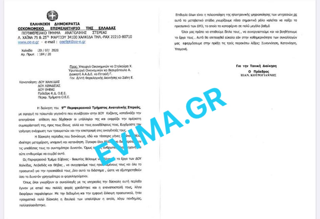 Επιστολή Κοτρογιάννη στον Σταϊκούρα για την επίθεση των υπαλλήλων στη ΔΟΥ Κοζάνης-Δείτε αποκλειστικά την επιστολή