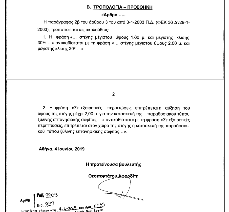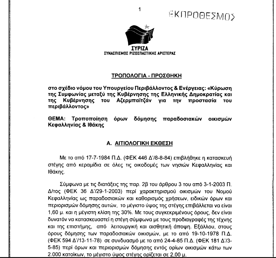 Η δεύτερη τροπολογία που κατέθεσε αφορά την «τροποποίηση όρων δόμησης παραδοσιακών οικισμών Κεφαλληνίας και Ιθάκης». Η τρίτη τροπολογία αφορά «Διαδικασία τροποποίησης ρυμοτομικού σχεδίου μετά από άρση ρυμοτομικής απαλλοτρίωσης ή δέσμευσης».