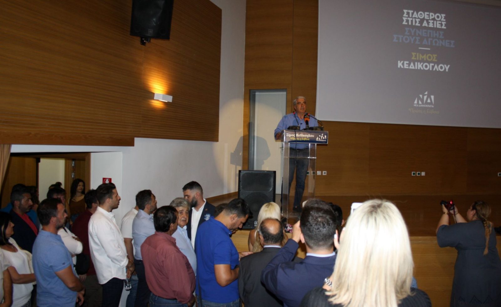 Στο κατάμεστο από κόσμο Αμφιθέατρο της Περιφερειακής Ενότητας Εύβοιας πραγματοποίησε χθες το βράδυ την προεκλογική ομιλία ο Σίμος Κεδίκογλου. Ο υποψήφιος βουλευτής της ΝΔ και πρώην υπουργός παρουσίασε το όραμά του για την Εύβοια παρουσία πολλών φίλων οι οποίοι γέμισαν ασφυκτικά το περιφερειακό μέγαρο.