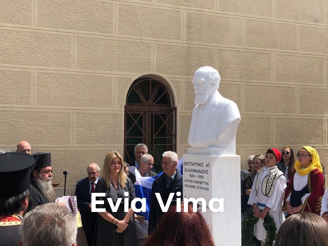 Αυτή την ώρα πραγματοποιούνται τα αποκαλυπτήρια της προτομής του πολιτικού Κωνσταντίνου Βλαχοθανάση ο οποίος γεννήθηκε το 1885 στα Καμάρια Ιστιαίας Εύβοιας.