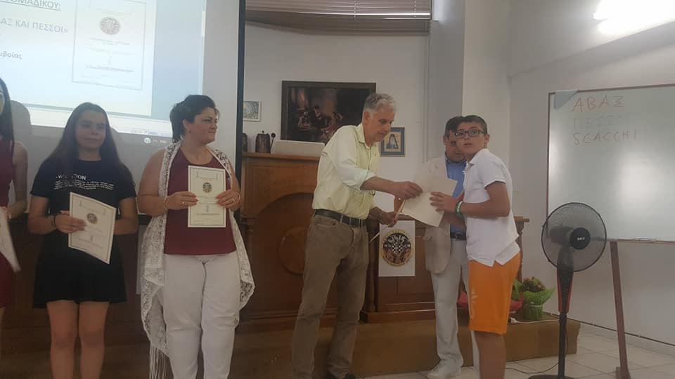 Ο υποψήφιος Βουλευτής Ευβοίας Σπύρος Πνευματικός παρέστη στην εκδήλωση του σκακιστικού τμήματος του Αθλητικού Εκπολιτιστικού Κέντρου “Άβαξ και πεσσοί” και απένειμε τα βραβεία των νικητών του πρωταθλήματος.