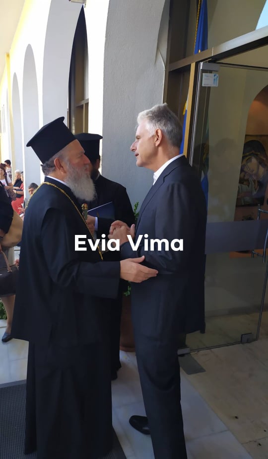 Ο Σεβασμιώτατος καλωσόρισε όλους τους επισήμους και είχε κατ΄ιδίαν θερμή συνομιλία με τον κ. Πνευματικό.