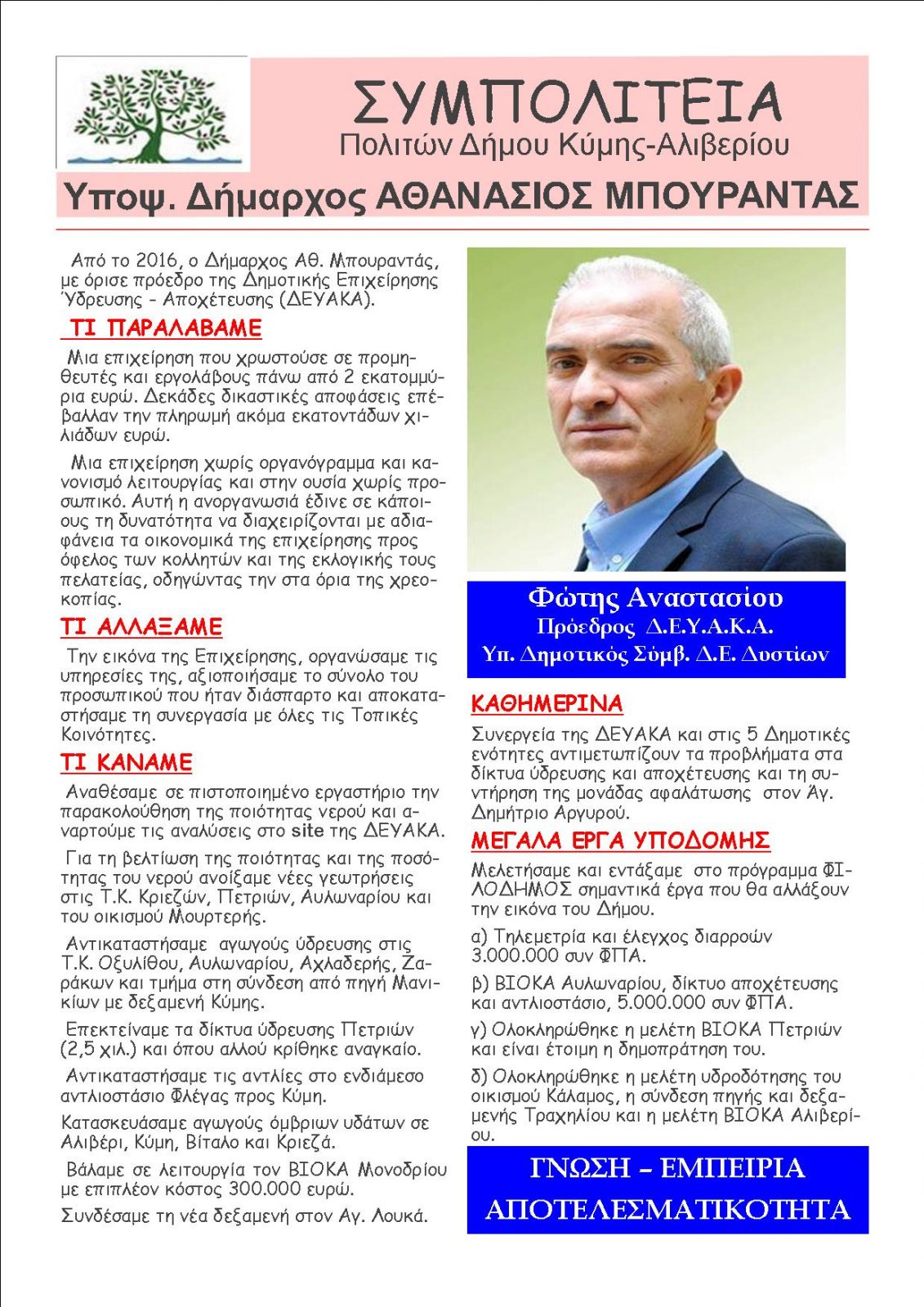 Και πάλι υποψήφιος με τη ΣΥΜΠΟΛΙΤΕΙΑ του Θανάση Μπουραντά ο Φώτης Αναστασίου .