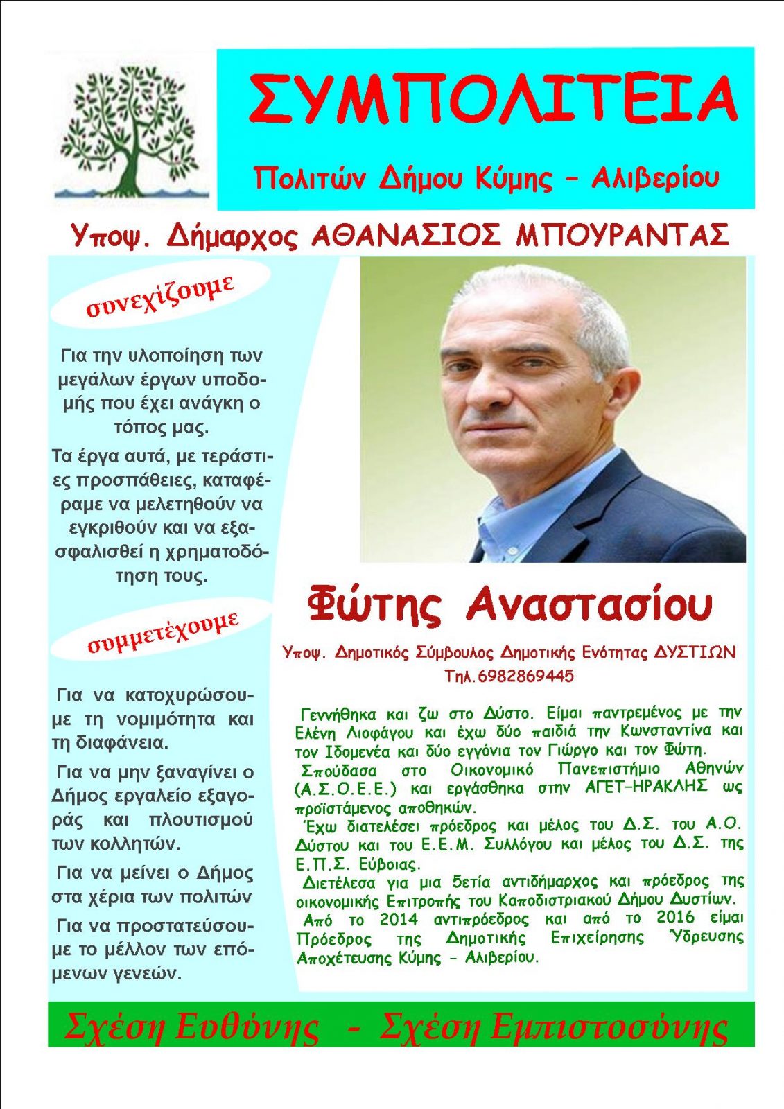 Και πάλι υποψήφιος με τη ΣΥΜΠΟΛΙΤΕΙΑ του Θανάση Μπουραντά ο Φώτης Αναστασίου .