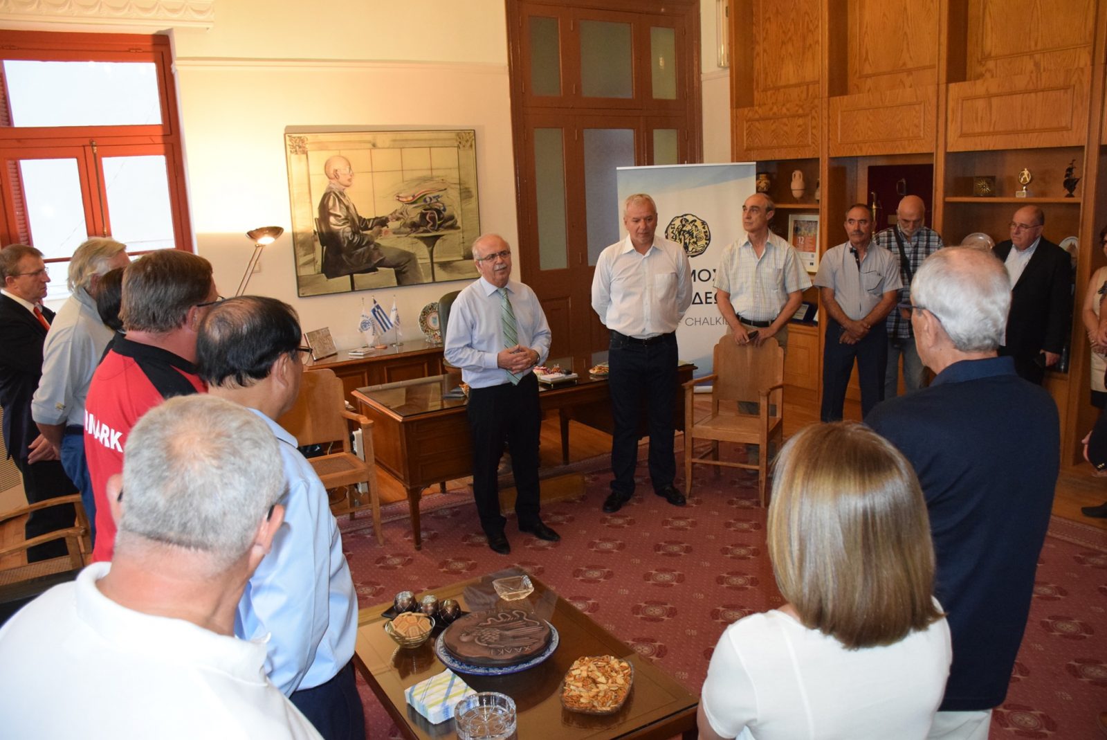 Ο Δήμαρχος, αφού τους υποδέχθηκε, τους μίλησε για την ιστορία της Χαλκίδας και τους προσέφερε συμβολικά δώρα. Από την πλευρά τους, οι διοργανωτές των Αγώνων προσέφεραν αναμνηστικό δώρο στον Δήμαρχο. Καθώς και στα μέλη της Φιλαρμονικής του Δήμου, που συμμετείχαν στην Τελετή Έναρξης των Αγώνων.