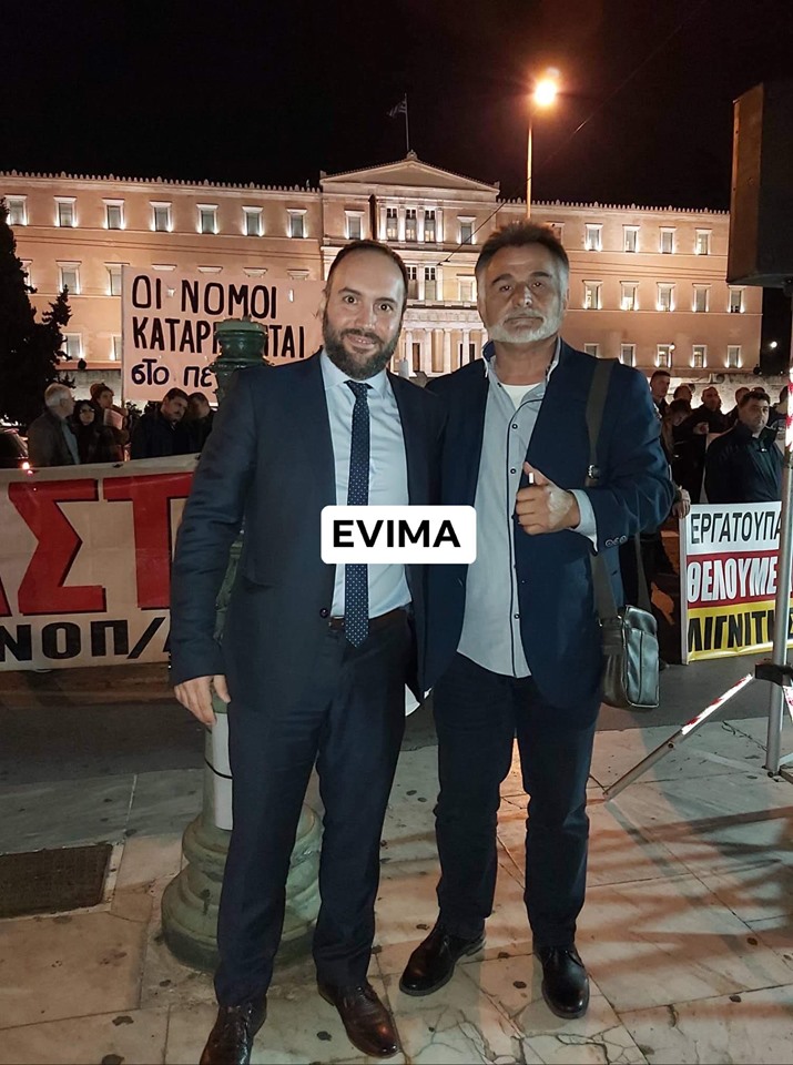 Στη φωτογραφία τον βλέπουμε με το μέλος της ΓΕΝΟΠ ΔΕΗ και πρόεδρο του Εργατικού Κέντρου Εύβοιας Δημήτρη Μούντριχα.