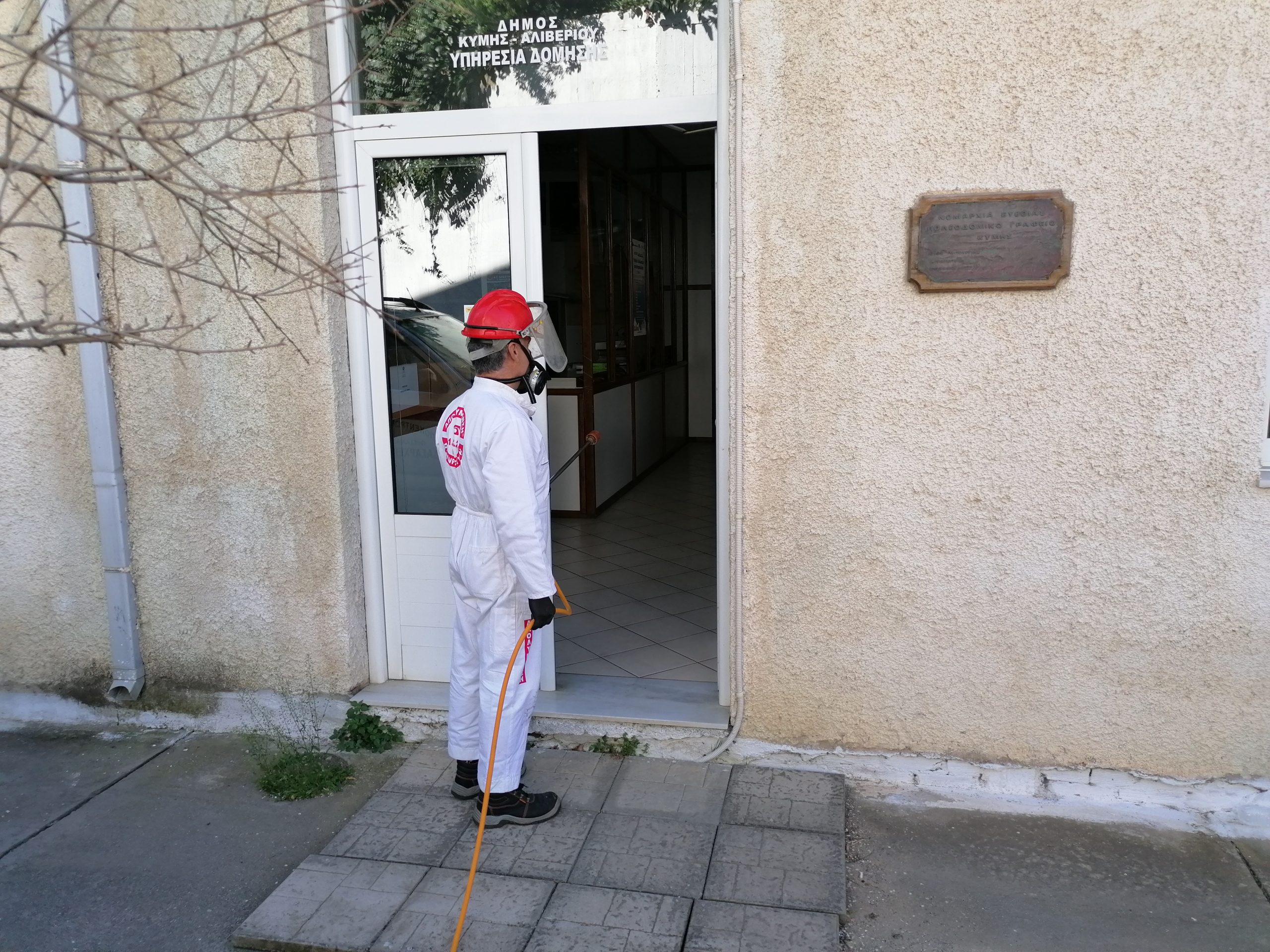Με την εποπτεία του υπευθύνου πολιτικής προστασίας του δήμου Κύμης Αλιβερίου αντιδημάρχου Κονιστρών και αρμόδιου για θέματα πολιτικής προστασίας Κώστα Δημά και του αντιδημάρχου Κύμης Αλέξανδρου Θεοδώρου οι οποίοι είναι μέλη της αρμόδιας επιτροπής του δήμου για τον περιορισμό εξάπλωσης του Κορονοϊου πραγματοποιούνται σήμερα 14 Μαρτίου 2020 απολυμάνσεις σε δημοτικά και δημόσια κτήρια των δημοτικών ενοτήτων Κύμης και Κονιστρών..