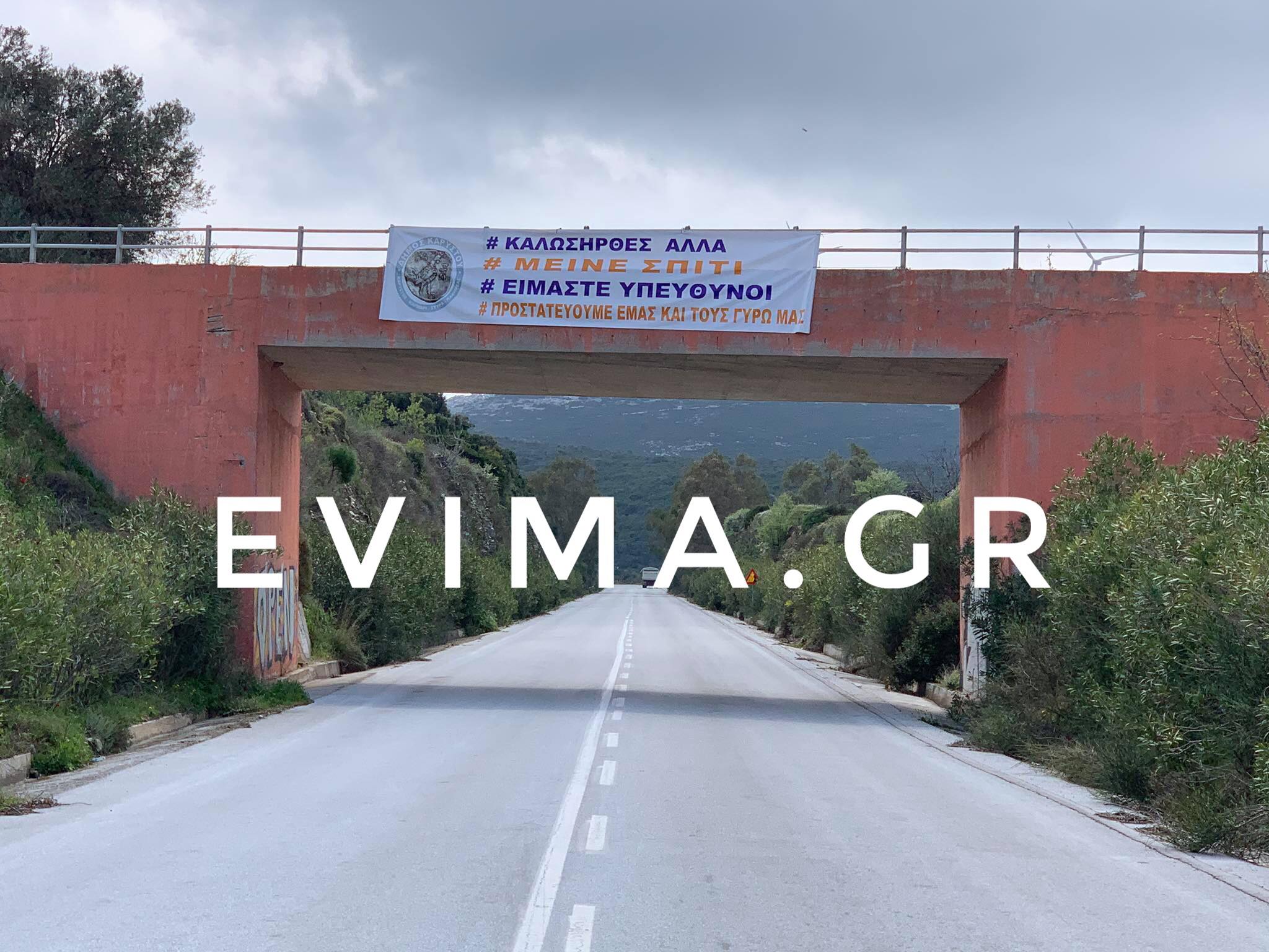 Σε άλλη μια σημαντική κίνηση προχώρησε ο δήμος Καρύστου με πρωτοβουλία του δημάρχου Λευτέρη Ραβιόλου. Στην κεντρική είσοδο του Αλμυροποτάμου τοποθέτησαν πανό το οποίο αναφέρει: Καλώς ήρθες αλλά μείνε σπίτι, είμαστε υπεύθυνοι προστατεύουμε εμάς και τους γύρω μας.