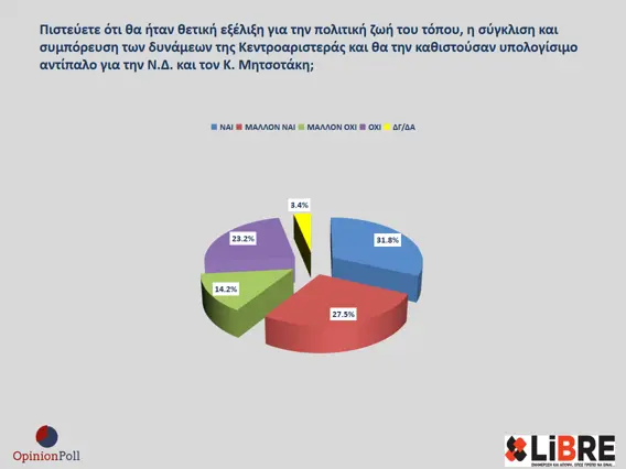Ωστόσο, το 59.3% θεωρεί θετική εξέλιξη μια σύγκλιση των δυνάμεων της κεντροαριστεράς και πιστεύουν ότι θα την καθιστούσαν υπολογίσιμο αντίπαλο στην Ν.Δ. Αντίθετη άποψη έχει το 37.4%.