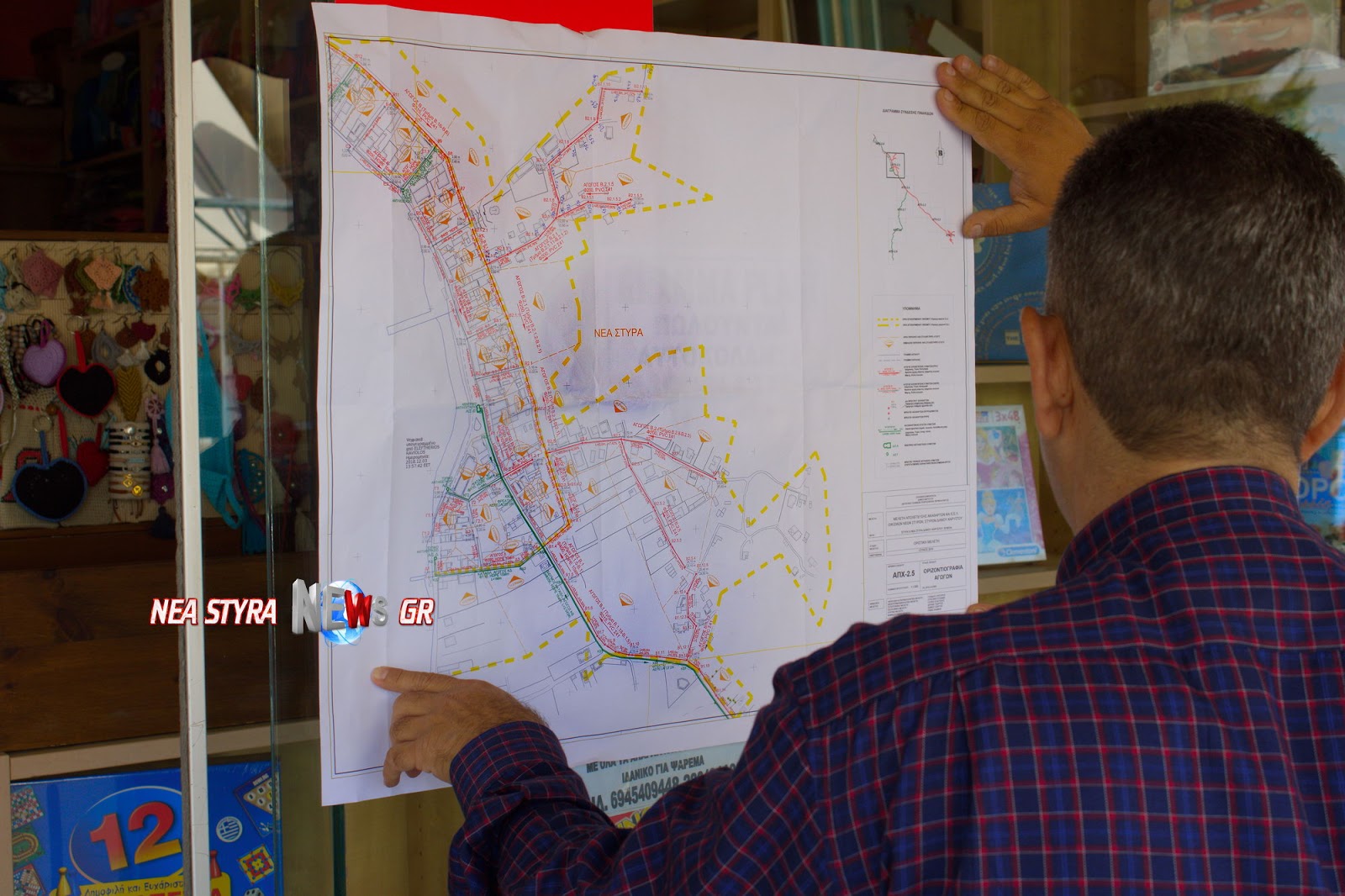 Ξεκίνησε σήμερα η χάραξη του δικτύου στα Νέα Στύρα και ο Λευτέρης Ραβιόλος ενημερώθηκε για την εξέλιξη των εργασιών.
