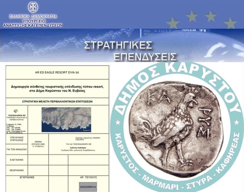 Λευτέρης Ραβιόλος:Σε συνέχεια της επικοινωνίας μου με τον κ. Δημοσθένη Βοϊβόντα προϊστάμενο της διεύθυνσης αδειοδοτήσεων του Υπουργείου Ανάπτυξης και Επενδύσεων, ζήτησα από τον πρόεδρο του Δημοτικού Συμβουλίου κ.Βόσσο την άμεση σύγκληση του οργάνου ώστε το σώμα να αποφανθεί σχετικά με τη μελέτη περιβαλλοντικών επιπτώσεων που αφορά τη δημιουργία σύνθετης τουριστικής επένδυσης, τύπου resort , στο Δήμο μας απο την εταιρεία «AR ES EAGLE RESORT EVIA ltd” ύψους 200.000.000€ . Η προσπάθεια ετών σε συνδυασμό με την σταθερή μας απόφαση για εξωστρέφεια και ισχυρή ισόρροπη τοπική ανάπτυξη για τους πολλούς, αποδίδει. Με ενότητα, σκληρή δουλεία και σχέδιο θα κάνουμε το Δήμο Καρύστου πρωταγωνιστή στη νέα εποχή.