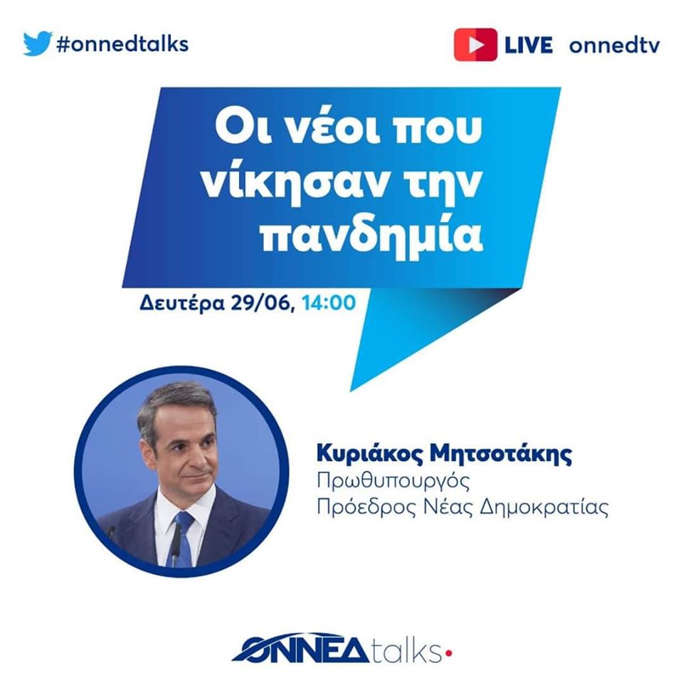 O Πρωθυπουργός Κυριάκος Μητσοτάκης μας τιμά με τη συμμετοχή του σε συζήτηση με νέους που συνέβαλαν αποφασιστικά στην κοινή προσπάθεια για την αντιμετώπιση της πανδημίας στην οποία θα συμμετέχει και η ΟΝΝΕΔ Εύβοιας.