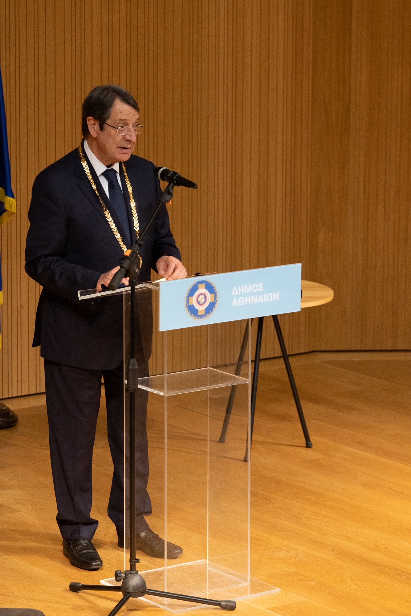 Την ύψιστη διάκριση της ελληνικής πρωτεύουσας, το Χρυσό Μετάλλιο Αξίας της Πόλεως των Αθηνών, απένειμε απόψε στον Πρόεδρο της Κυπριακής Δημοκρατίας Νίκο Αναστασιάδη ο Δήμαρχος Αθηναίων Κώστας Μπακογιάννης εκ μέρους του Δημοτικού Συμβουλίου της  πρωτεύουσας.