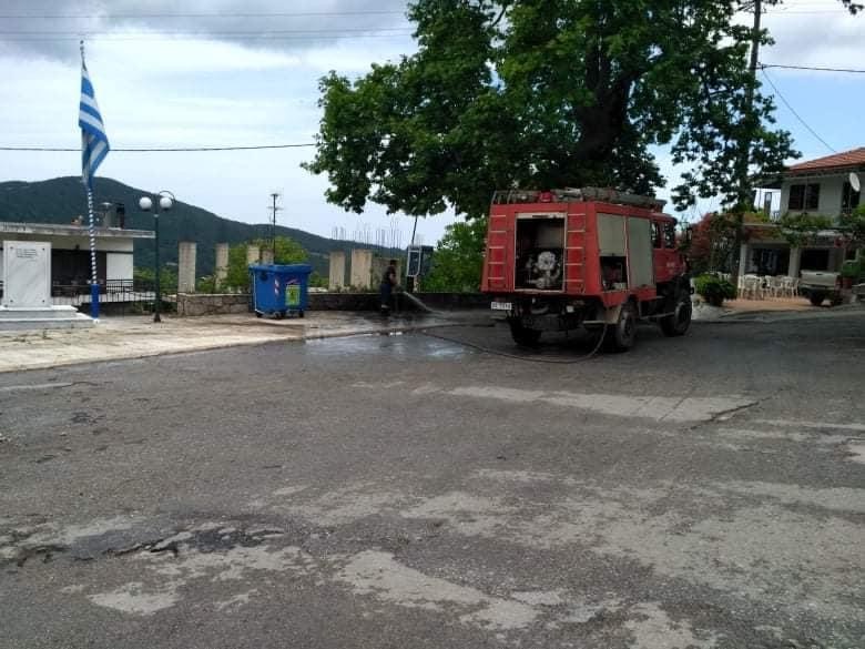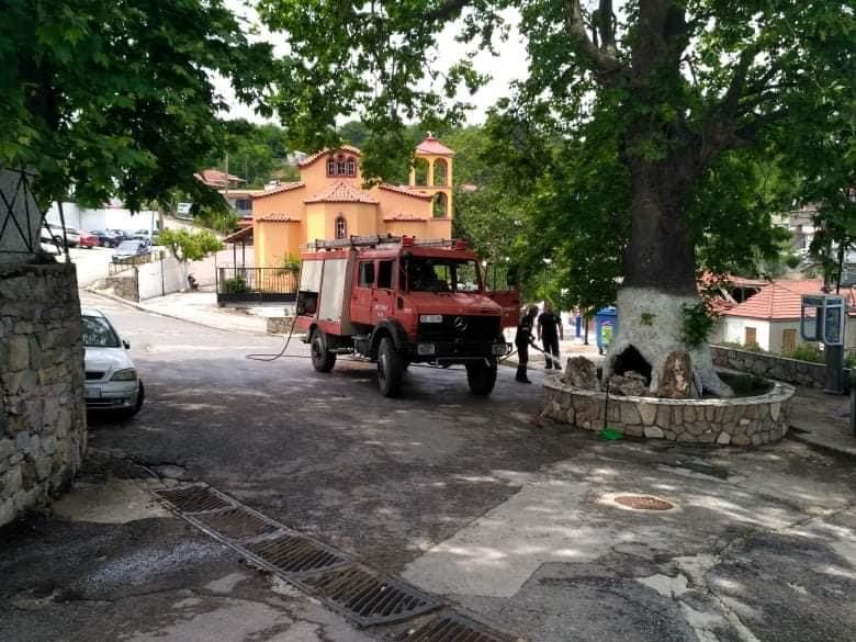 Την πλατεία της Κερασιάς καθάρισε σε συνεργασία με την Πυροσβεστική ο πρόεδρος της Κοινότητας Δημήτρης Μαργαρίτης.