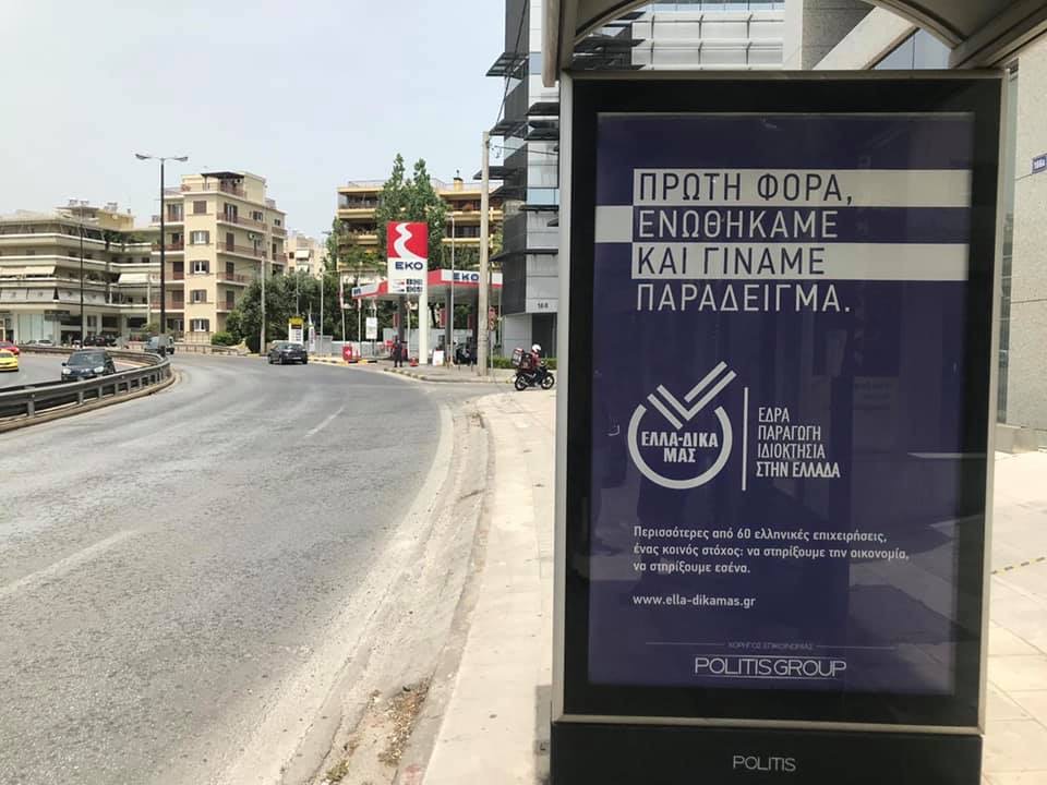 Παράλληλα, η πρωτοβουλία ΕΛΛΑ-ΔΙΚΑ ΜΑΣ με μότο «Πρώτη φορά ενωθήκαμε και γίναμε παράδειγμα» ανακοίνωσε την επίσημη έναρξη τηςτηλεοπτικής, digital και outdoor προωθητικής καμπάνιας της, με 100 σημεία παρουσίας σε όλη την Αθήνα, στοχεύοντας να επικοινωνήσει άμεσα τις αξίες και το ιδεολογικό της περιεχόμενο στο κοινό. Η εκστρατεία επικοινωνίας και ενημέρωσης της Πρωτοβουλίας εστιάζει στην ενότητα των Ελλήνων και κυρίως στο κοινό υπόβαθρό των περισσοτέρων από 60 εταιριών με Έδρα, Παραγωγή και Ιδιοκτησία στην Ελλάδα, πουλειτουργούν ομαδικά και αγωνίζονται για έναν κοινό σκοπό, τη στήριξη της οικονομίας και της κοινωνίας. Η πανδημία του COVID-19 ανέδειξε τη σημασία των εννοιών της συνεργασίας και της αλληλεγγύης, που με τη χρήση συναισθηματικού λόγου, επικοινωνούνται εύστοχα στους πολίτες μέσω της καμπάνιας.